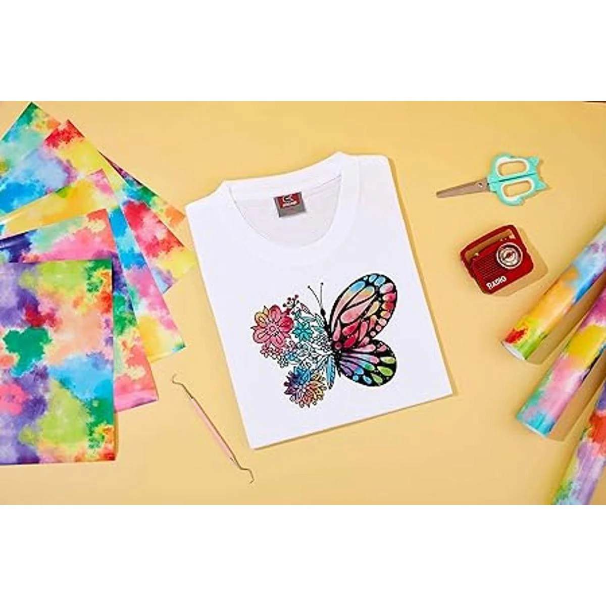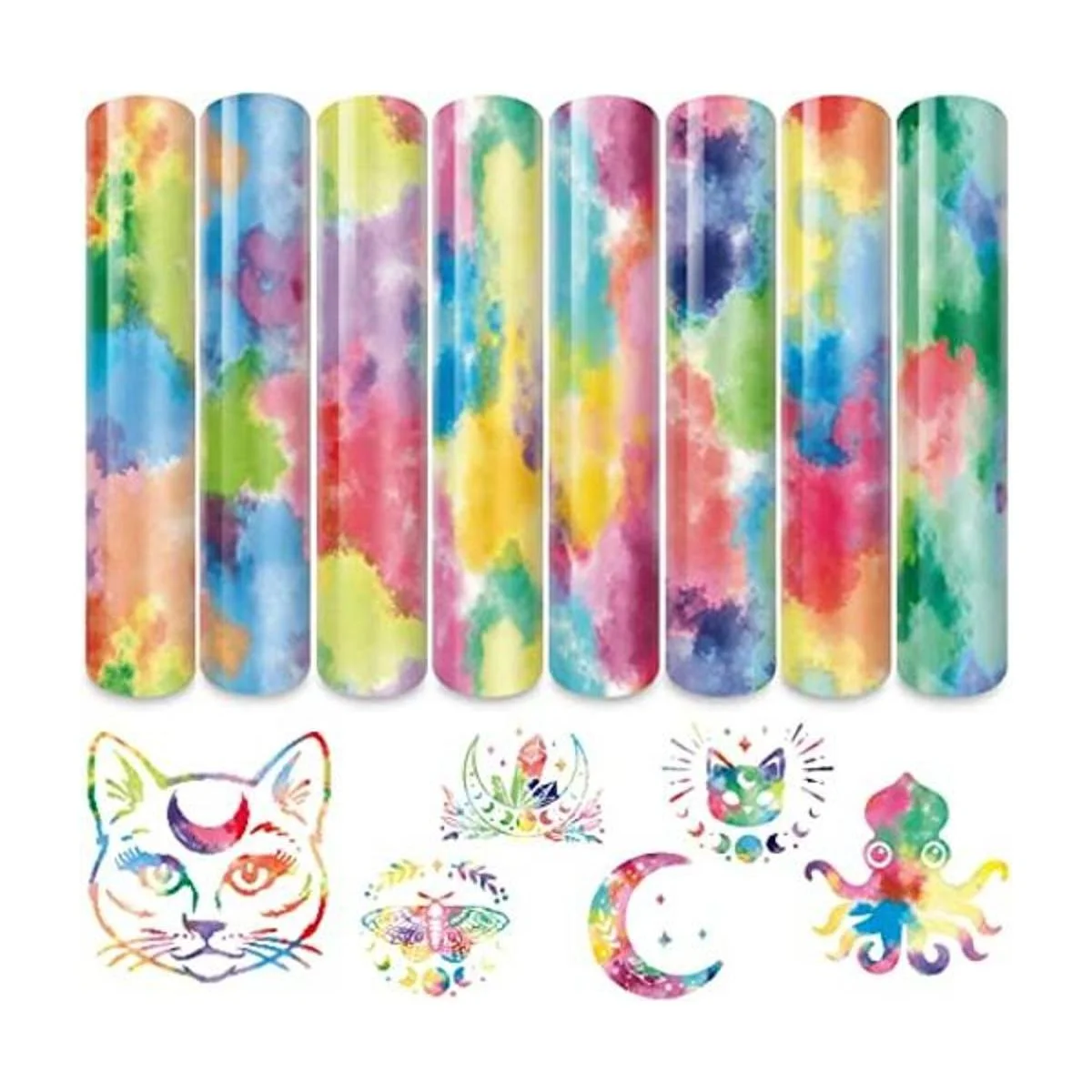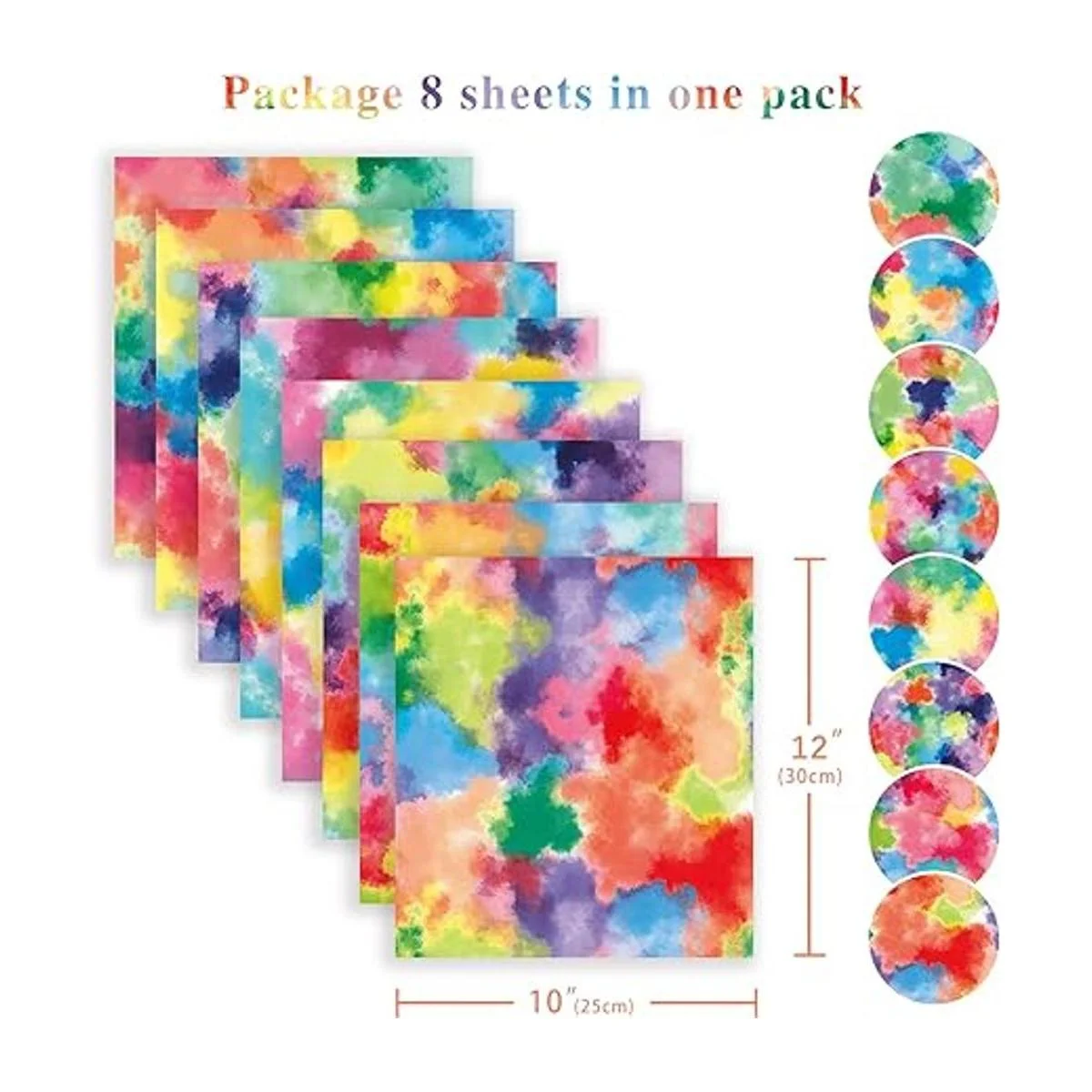 Tintnut TieDyeHtv Rainbow Iron On Vinyl8 hojas de vinilo de transferencia de calor de 10 x 12 pulgadas para camisetas, tela, nubes, paquete de vinilo de acuarela DIY camiseta para Cricut Silhouette Cameo