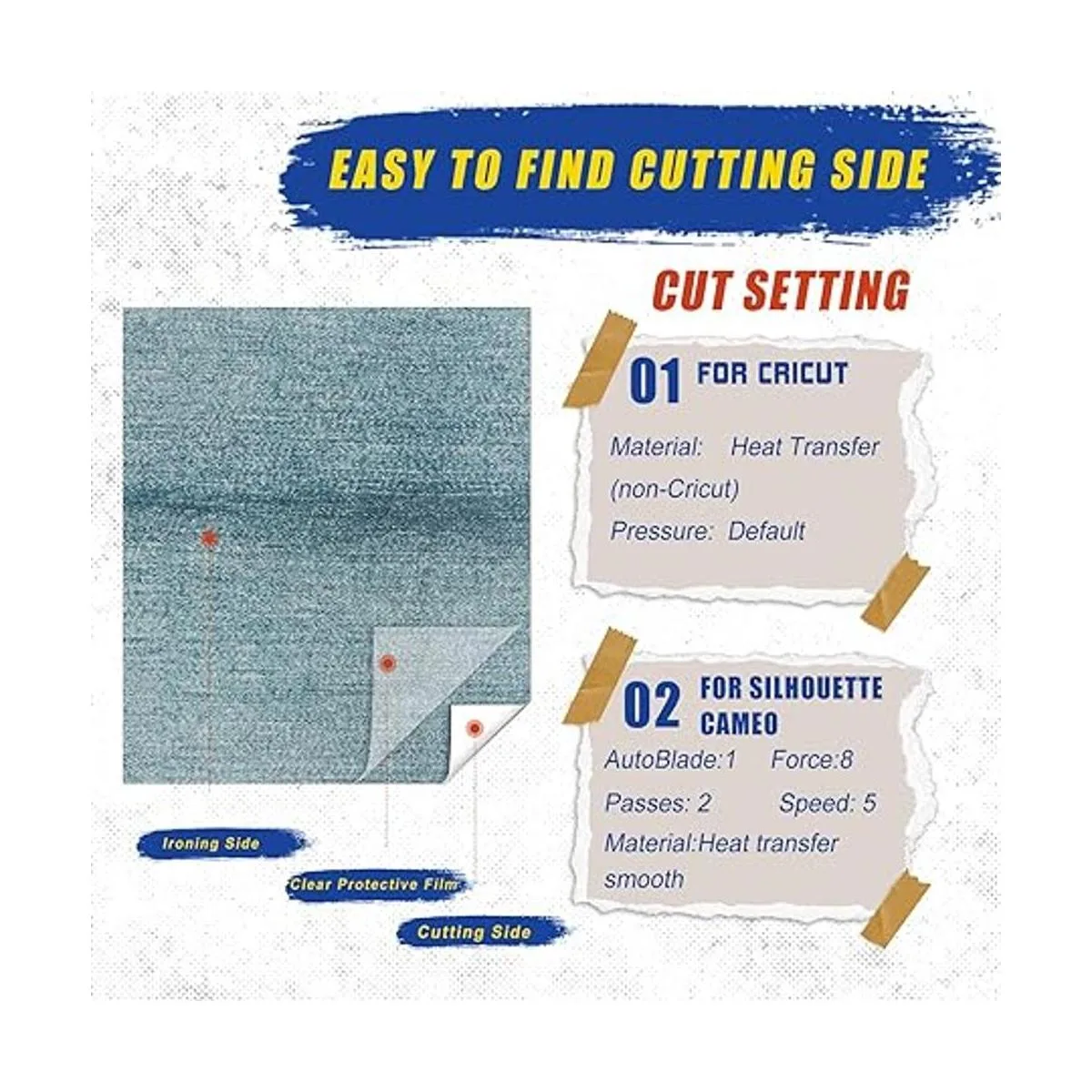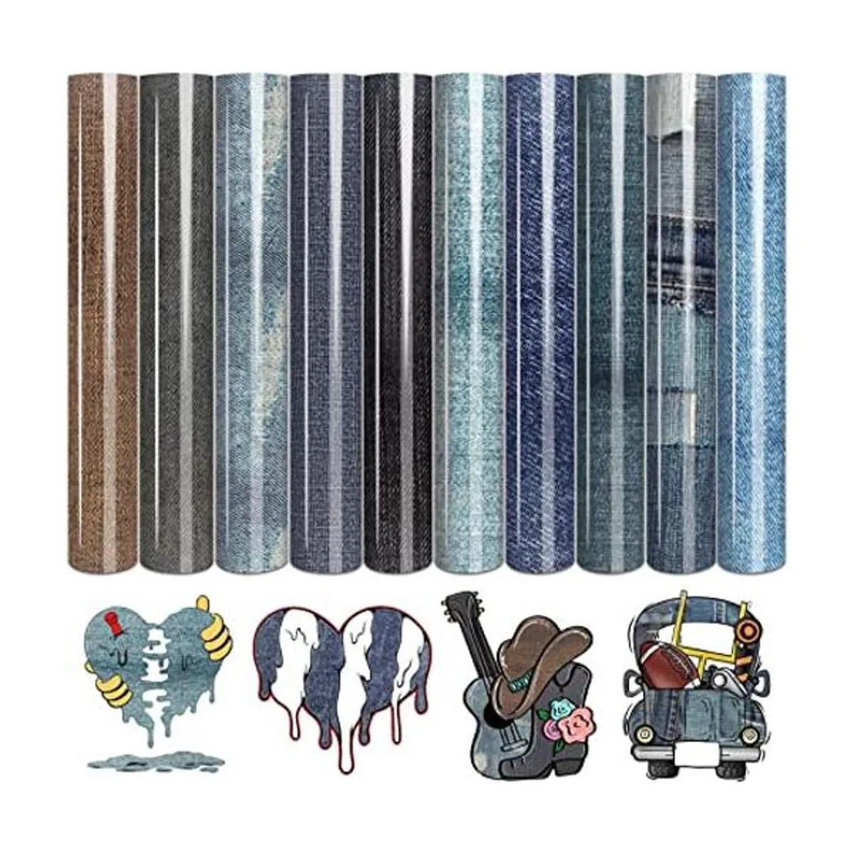 Diseño y color únicos: este vinilo de transferencia de calor de mezclilla incluye 10 hojas con diferentes colores y diseños, cantidades suficientes para que puedas crear tus manualidades de bricolaje
