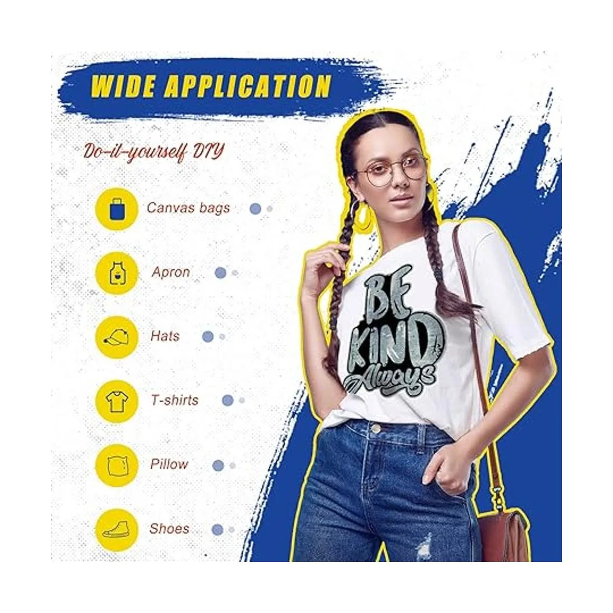 Amplia transferencia Este vinilo para planchar se puede utilizar para hacer tu propio diseño de camisetas, zapatos, gorras, bolsas de café, bolsos, almohadas, etc. Ampliamente aplicado en muchas telas para telas de algodón, poliéster y algodón.