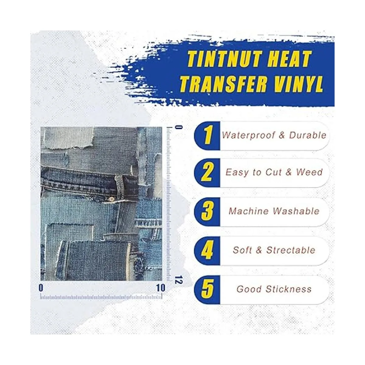 Tintnut Vinilo de mezclilla HTV 10 hojas de 12 x 10 pulgadas, jeans azules impresos, vinilo de transferencia de calor con patrón HTV envejecido, vinilo para planchar para camisetas, bricolaje, compatible con Cricut o Silhoutte Cameo