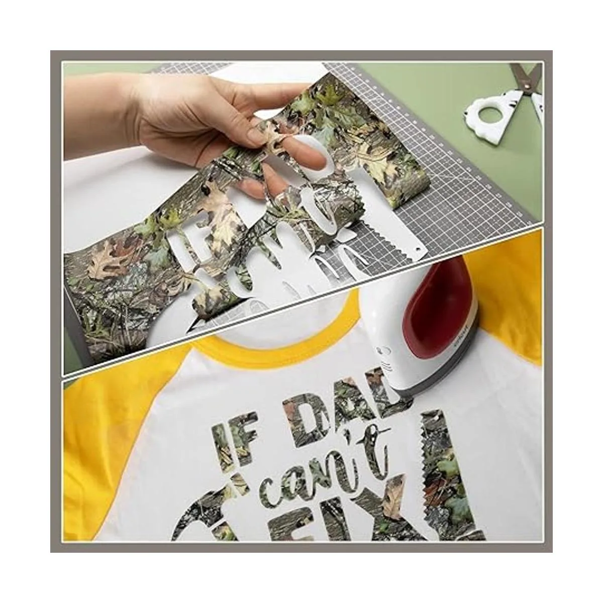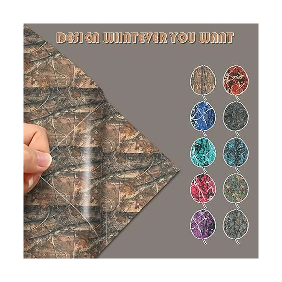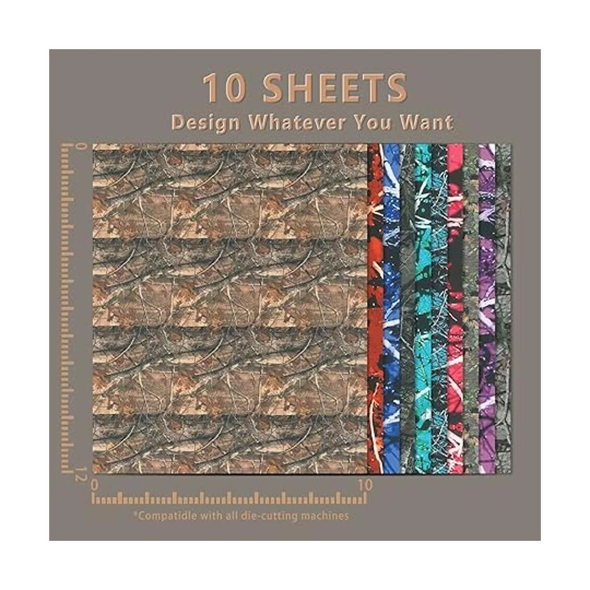 Diferentes diseños y multicolor: este juego de vinilo de transferencia de calor de camuflaje de árbol real incluye 10 hojas con diferentes colores y diseños, cantidades suficientes para que puedas crear tus manualidades de bricolaje