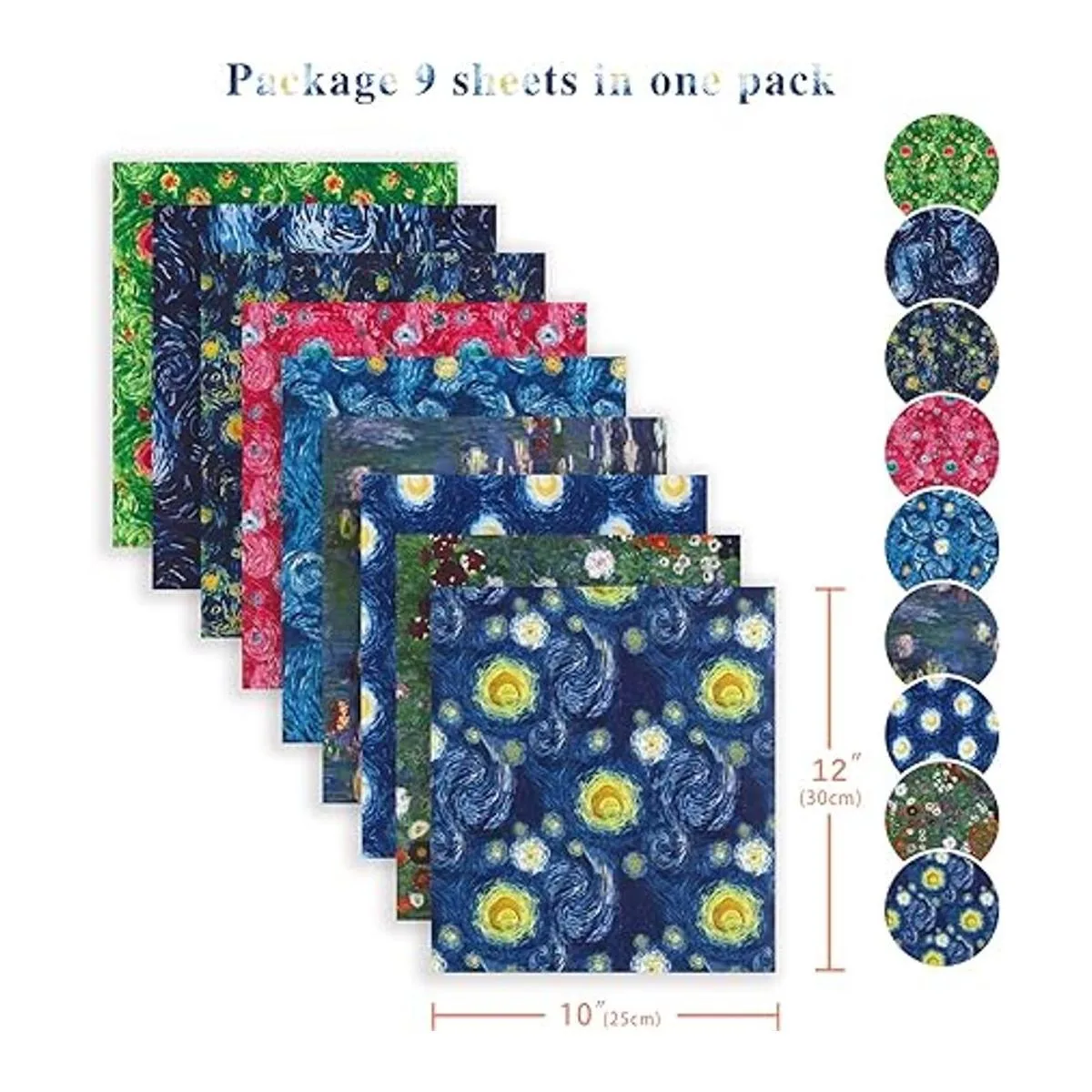 Tintnut Vinilo de transferencia de calor de noche estrellada, 9 hojas de 12 x 10 pulgadas, pinturas impresionistas Van Gogh HTV paquete de vinilo para planchar para tela de prensado de calor, manualidades, camisetas, sombreros, bolsas de lona
