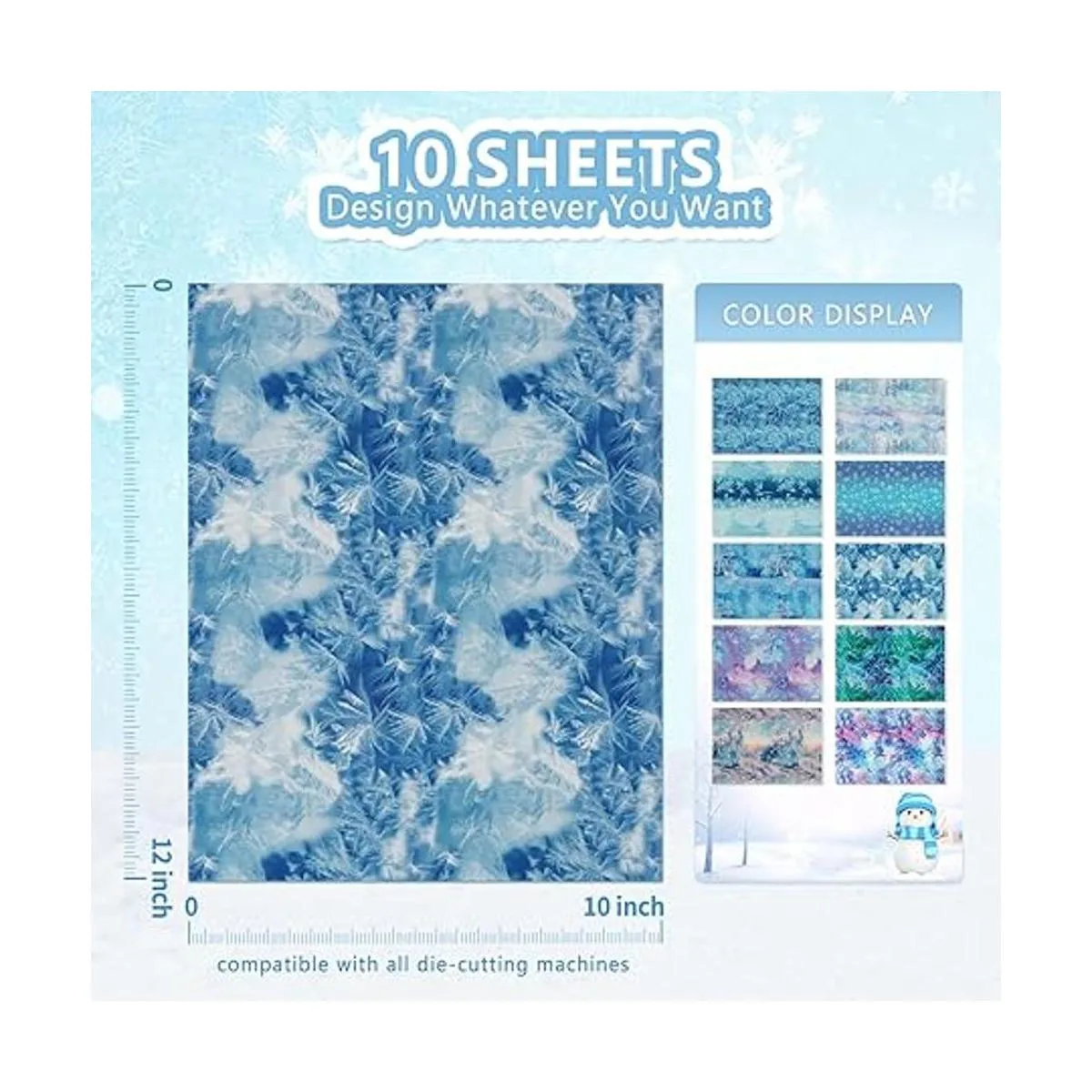 Diseño y color únicos: este vinilo de transferencia de calor de copo de nieve de Navidad incluye 10 hojas con diferentes colores y diseños, cantidades suficientes para que puedas crear tus manualidades de bricolaje