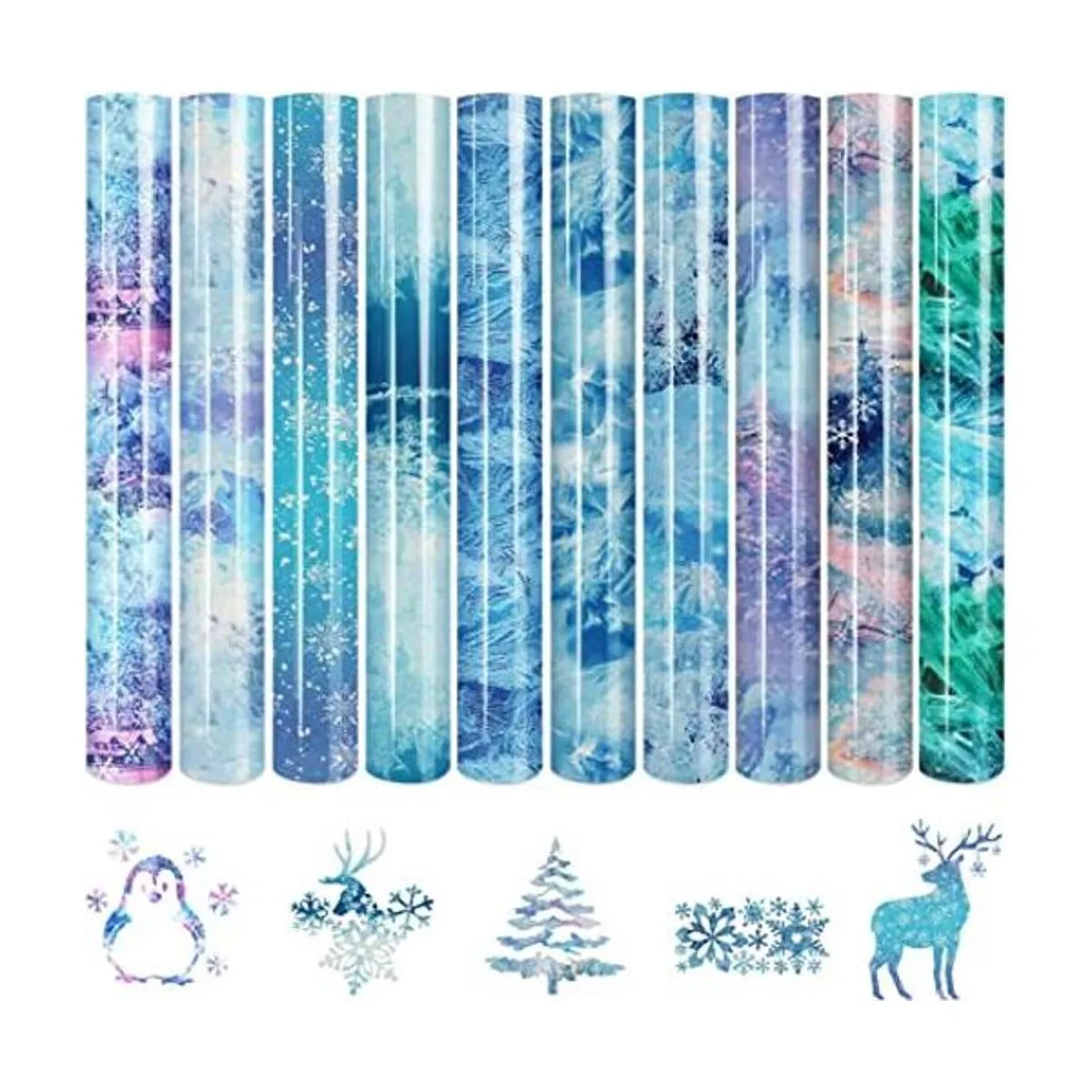 Tintnut Vinilo de transferencia de calor HTV de copo de nieve, 10 hojas, 12 x 10 pulgadas, vinilo HTV para planchar en árboles azules, acuarela con patrón de árboles azules para camisas DIY para Cricut o Cameo