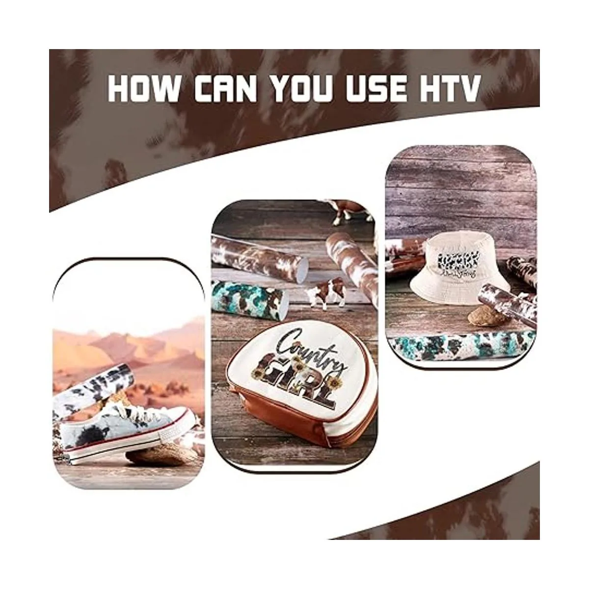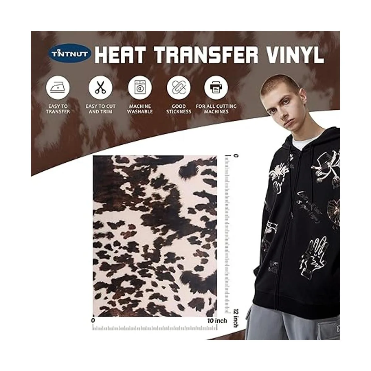 Tintnut Vinilo HTV de piel de vacuno, 10 hojas de 12 x 10 pulgadas, vinilo de transferencia de calor marrón, estampado de animales, vinilo HTV para planchar para camisetas, bricolaje, compatible con Cricut o Silhoutte Cameo