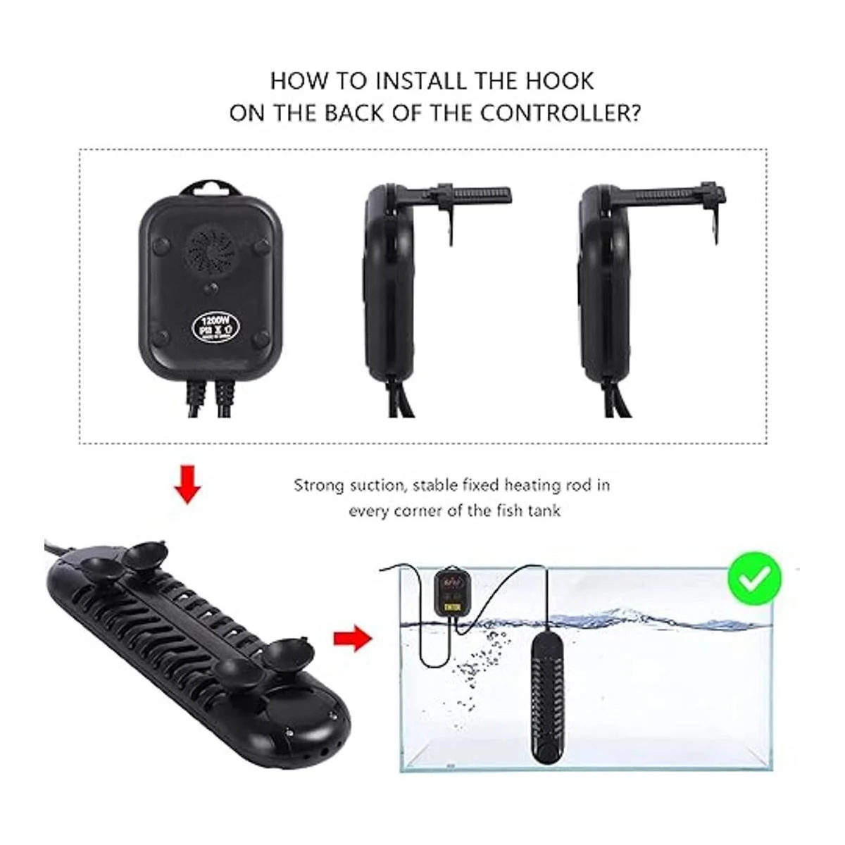 TINTOR Calentador sumergible para acuario, 800 W1200 W, calefacción de doble tubo, calentamiento rápido y ahorro de energía, controlador de temperatura digital LED, apto para agua de mar y agua dulce