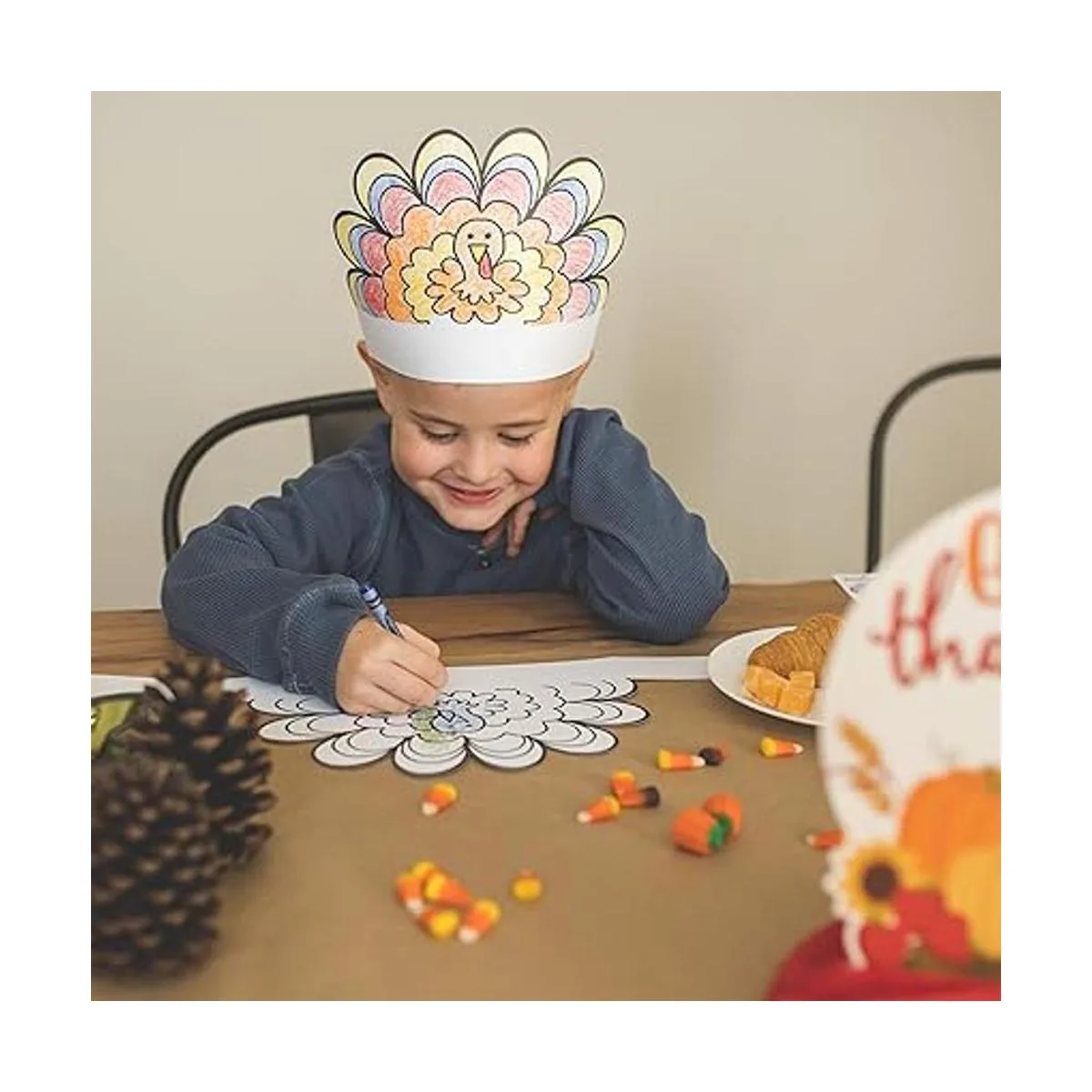 CUSTOM PARTY PROPS Give the kids a fun Thanksgiving activity this year with Tiny Expressions color your own Turkey crowns. These paper crowns are made with thick non bleed paper and are perfect for crayons, markers, gel pens, or colored pencil coloring.