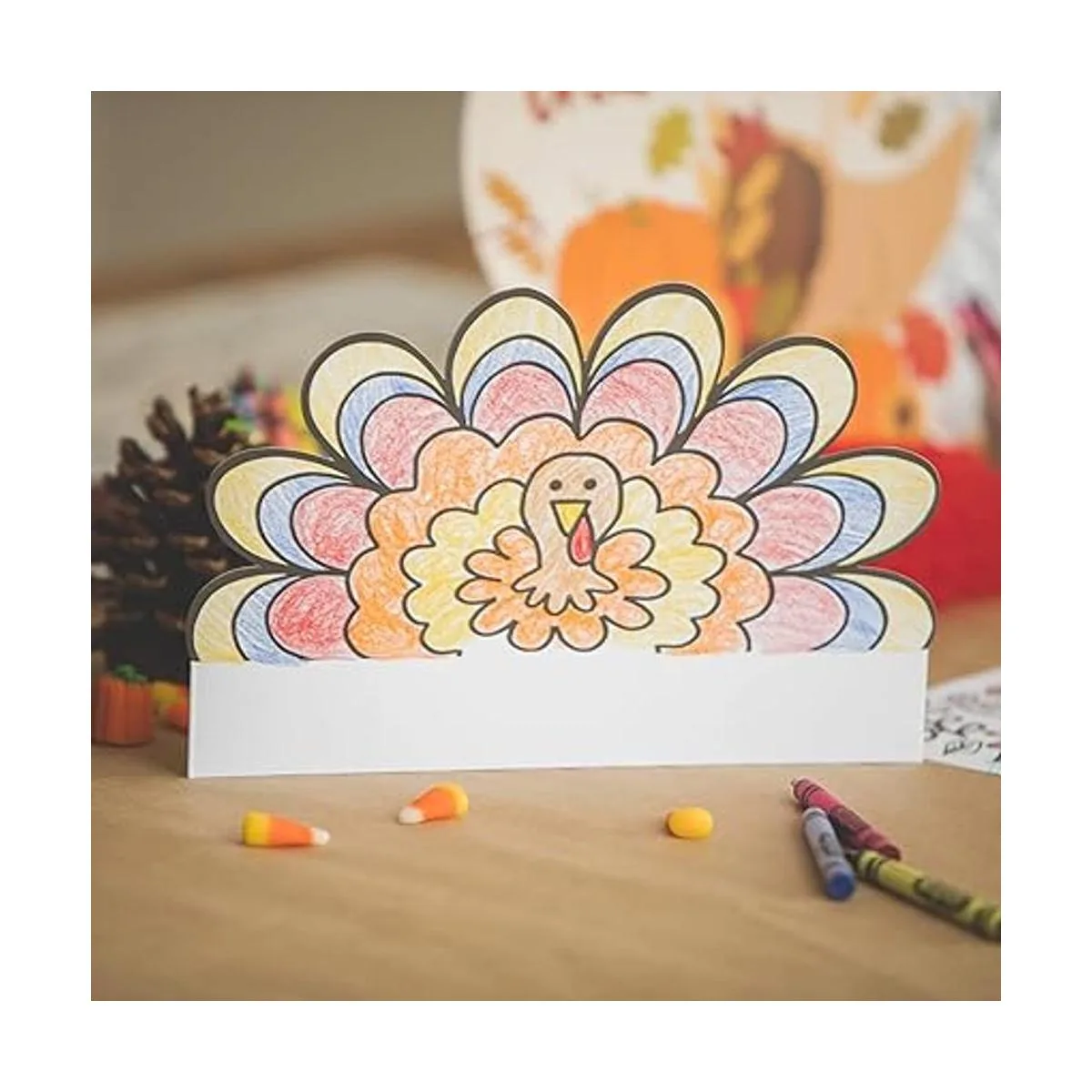 Tiny Expressions Colorea tus propias coronas de pavo, diademas para colorear de Acción de Gracias, 12 unidades, para la escuela de Acción de Gracias y actividades de manualidades para niños