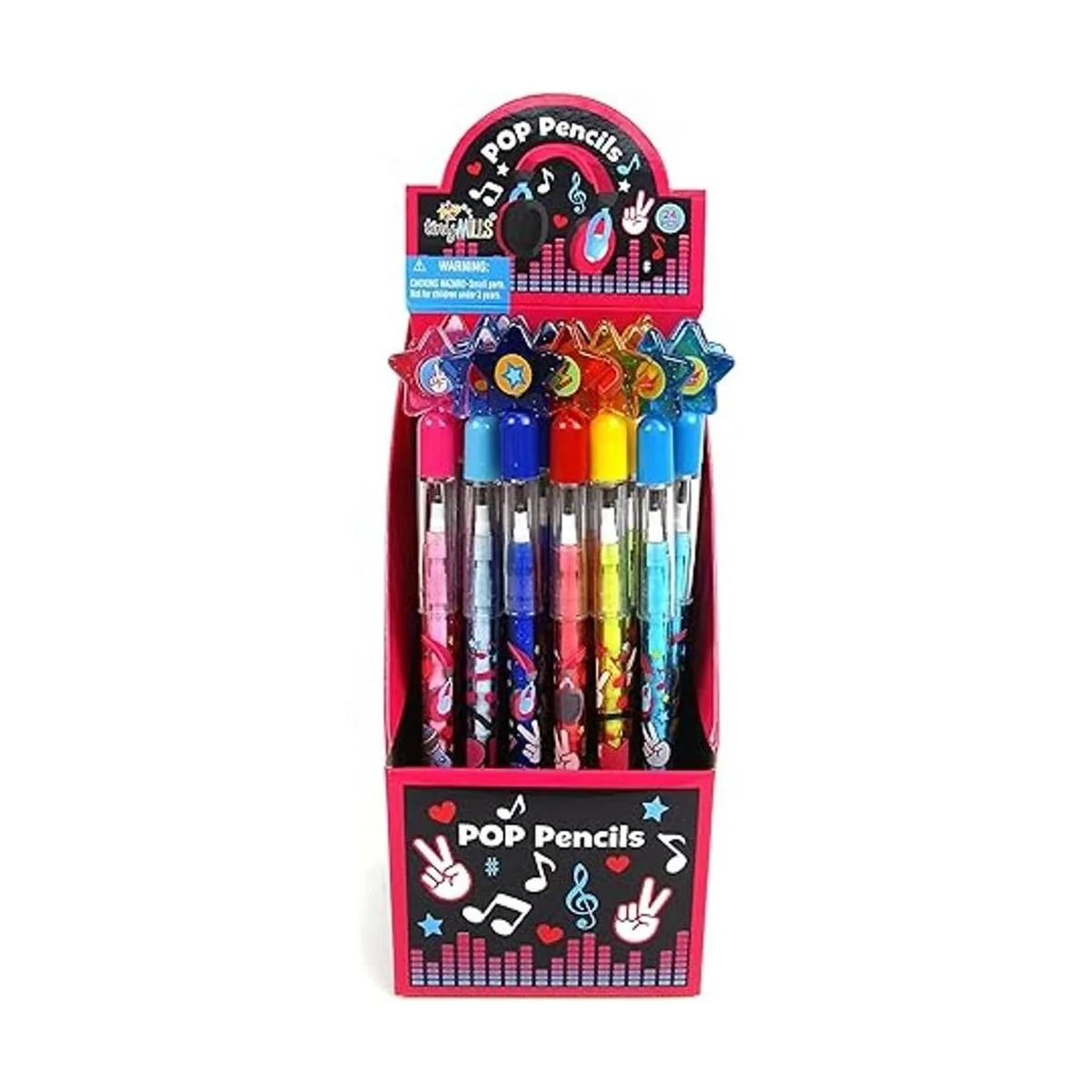 TINYMILLS 24 lápices de música multipunto apilables, surtido con borrador, para fiestas de cumpleaños, bolsas de regalos, premios de carnaval, recompensas de aula