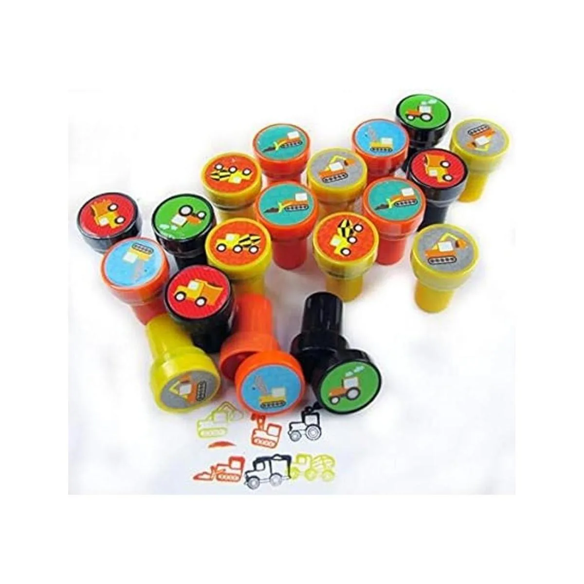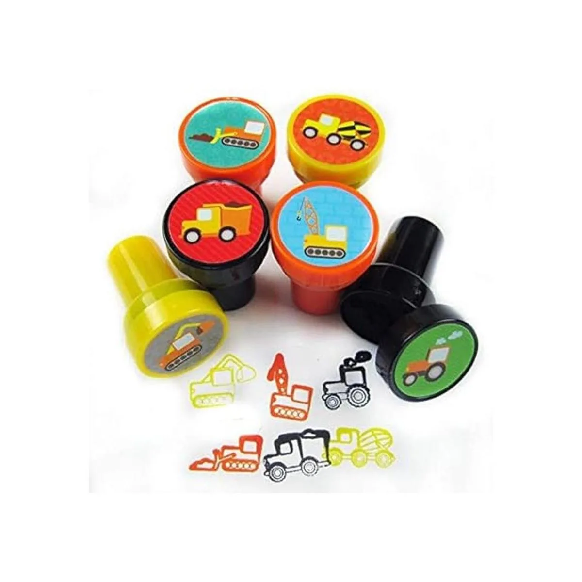 TINYMILLS Los sellos de camiones de construcción son libres de BPA, no tóxicos y han pasado las pruebas CPSIA y ASTM. Aprox. Tamaño del sello: 1.5 pulgadas de alto, 1 pulgada de diámetro