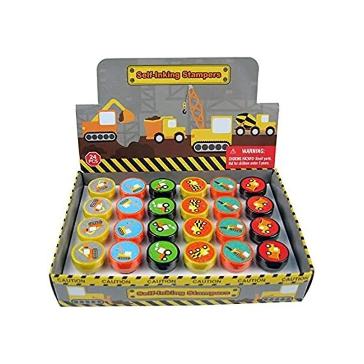 TINYMILLS 24 sellos de camiones de construcción para niños, camión de basura, camión volquete, recuerdos de fiesta, regalos de aula, rellenos de piñata, regalos de fiesta