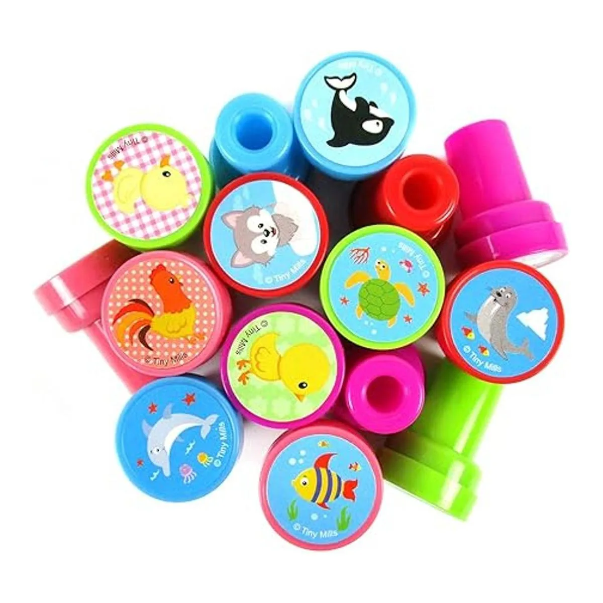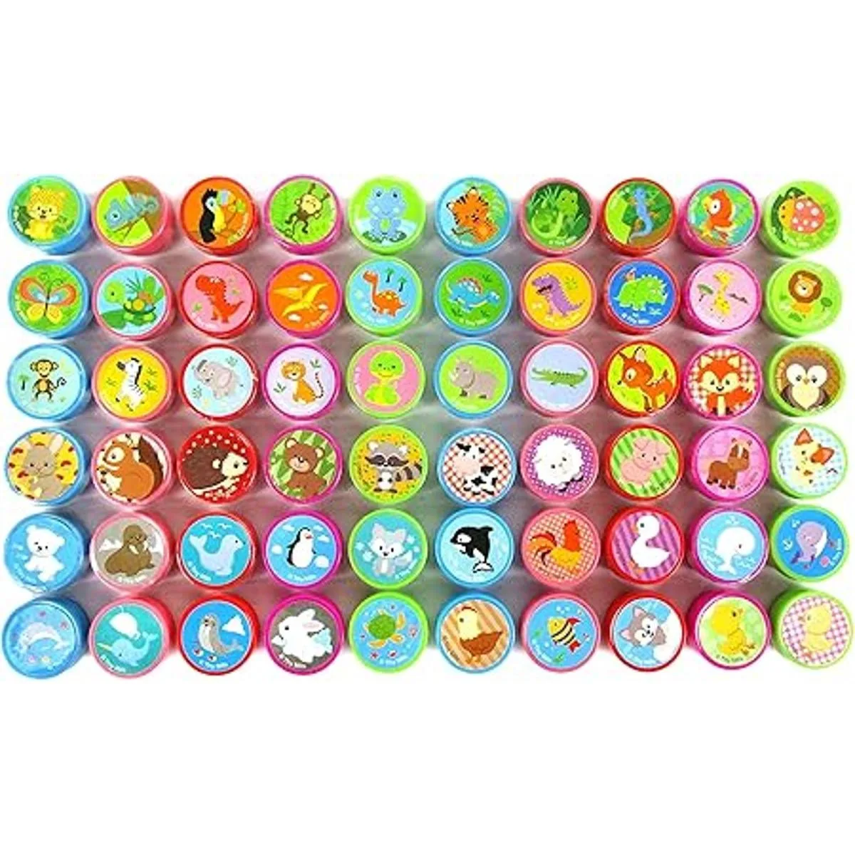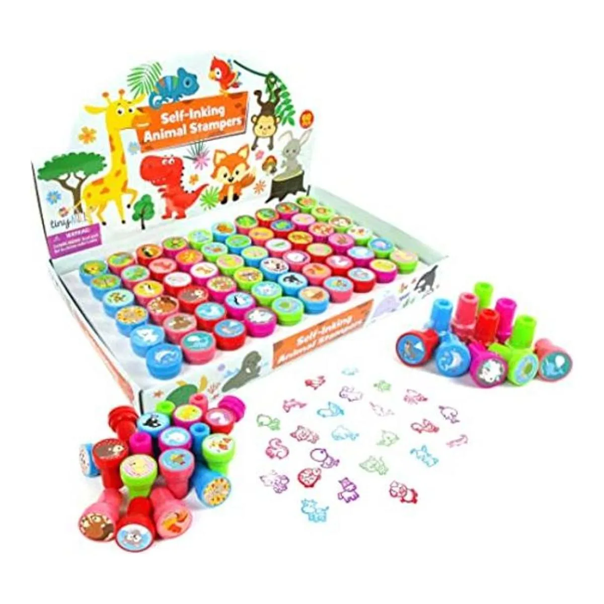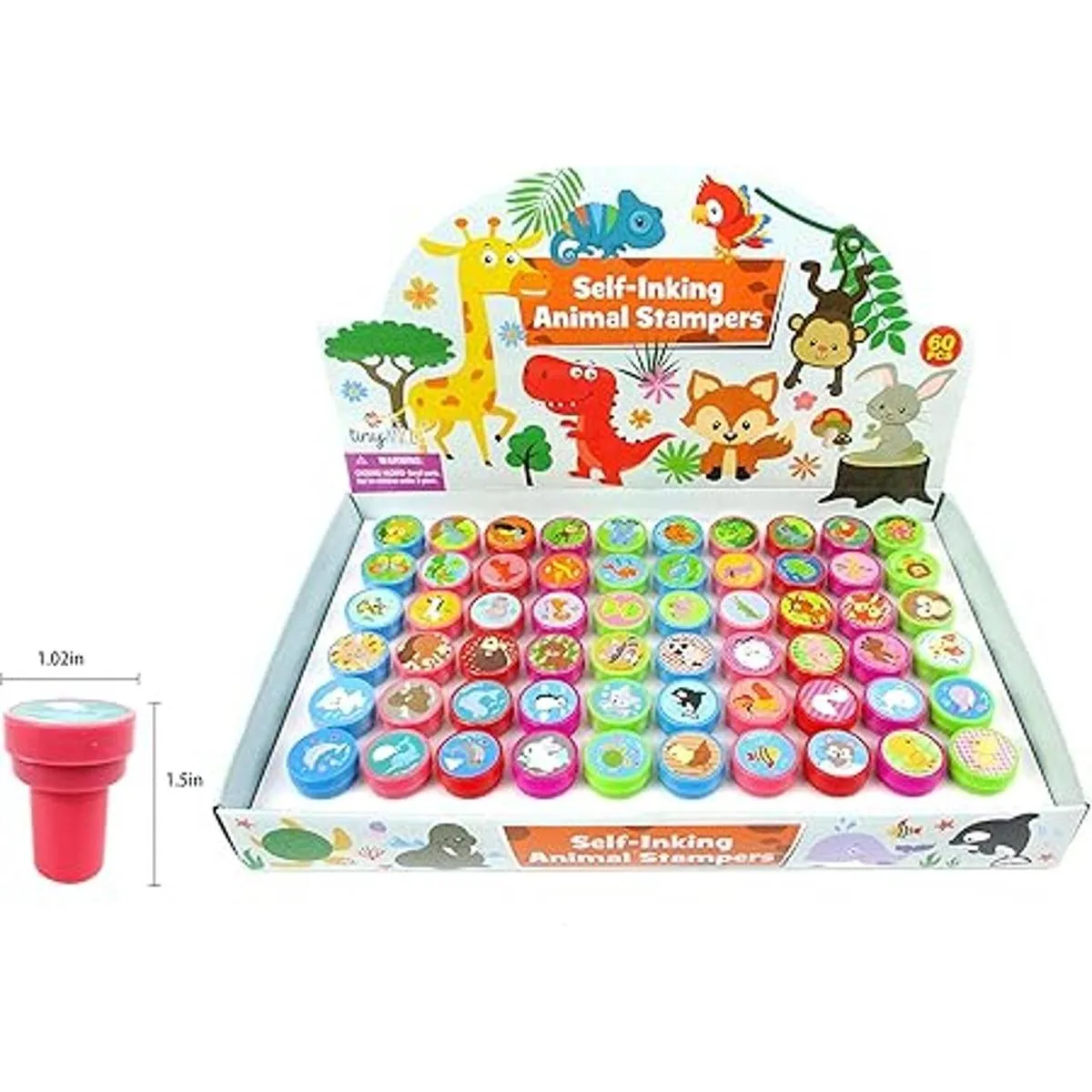 TINYMILLS 60 sellos surtidos de animales para niños, regalos de fiesta, premios, recompensas de aula, relleno de piñata, artes y manualidades para niños
