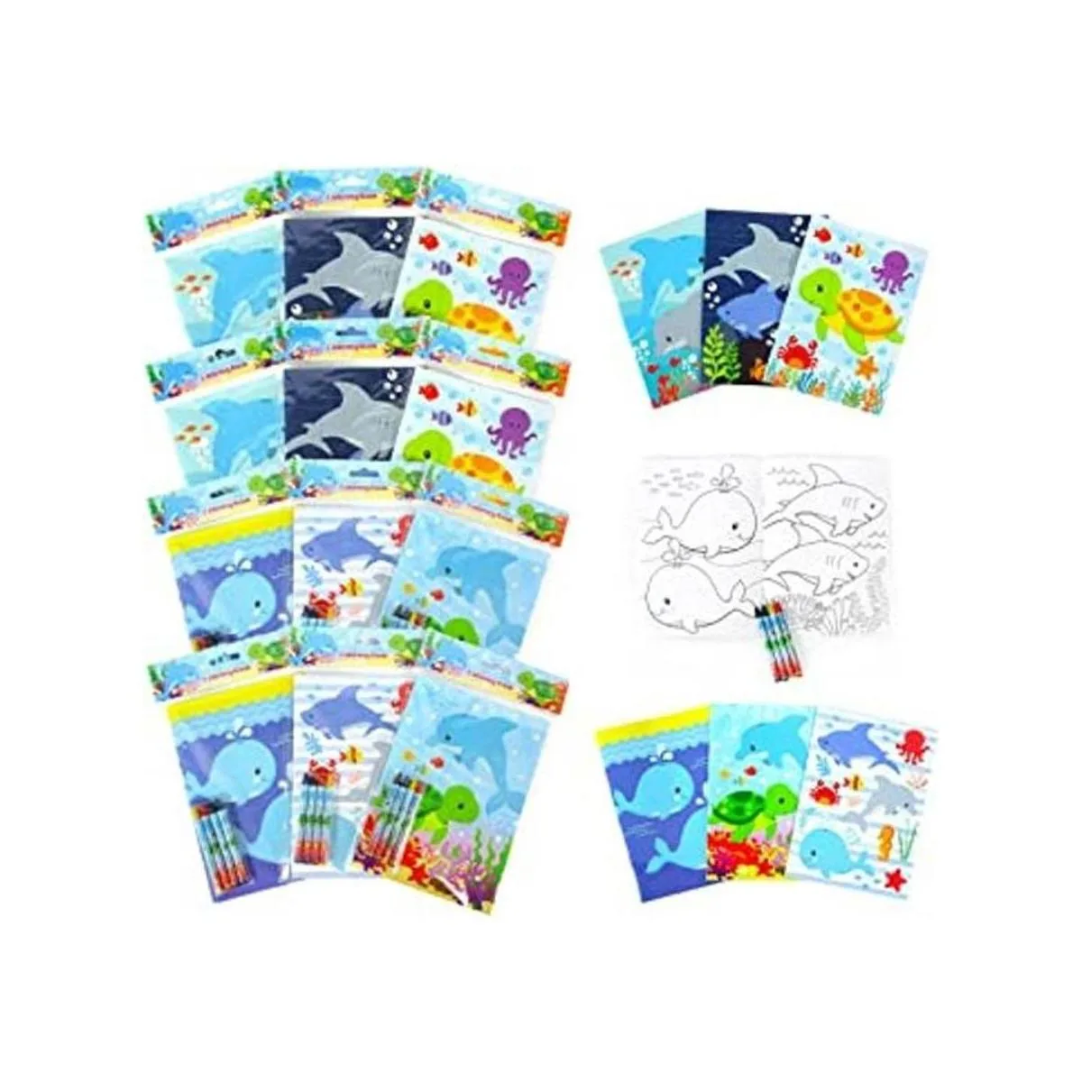 TINYMILLS Juego de libros para colorear de tortugas marinas con 12 libros para colorear y 48 crayones de animales del océano, suministros para fiesta de cumpleaños, relleno de bolsas de regalo, premios de carnaval, recompensas, relleno de calcetines, fiesta de aula