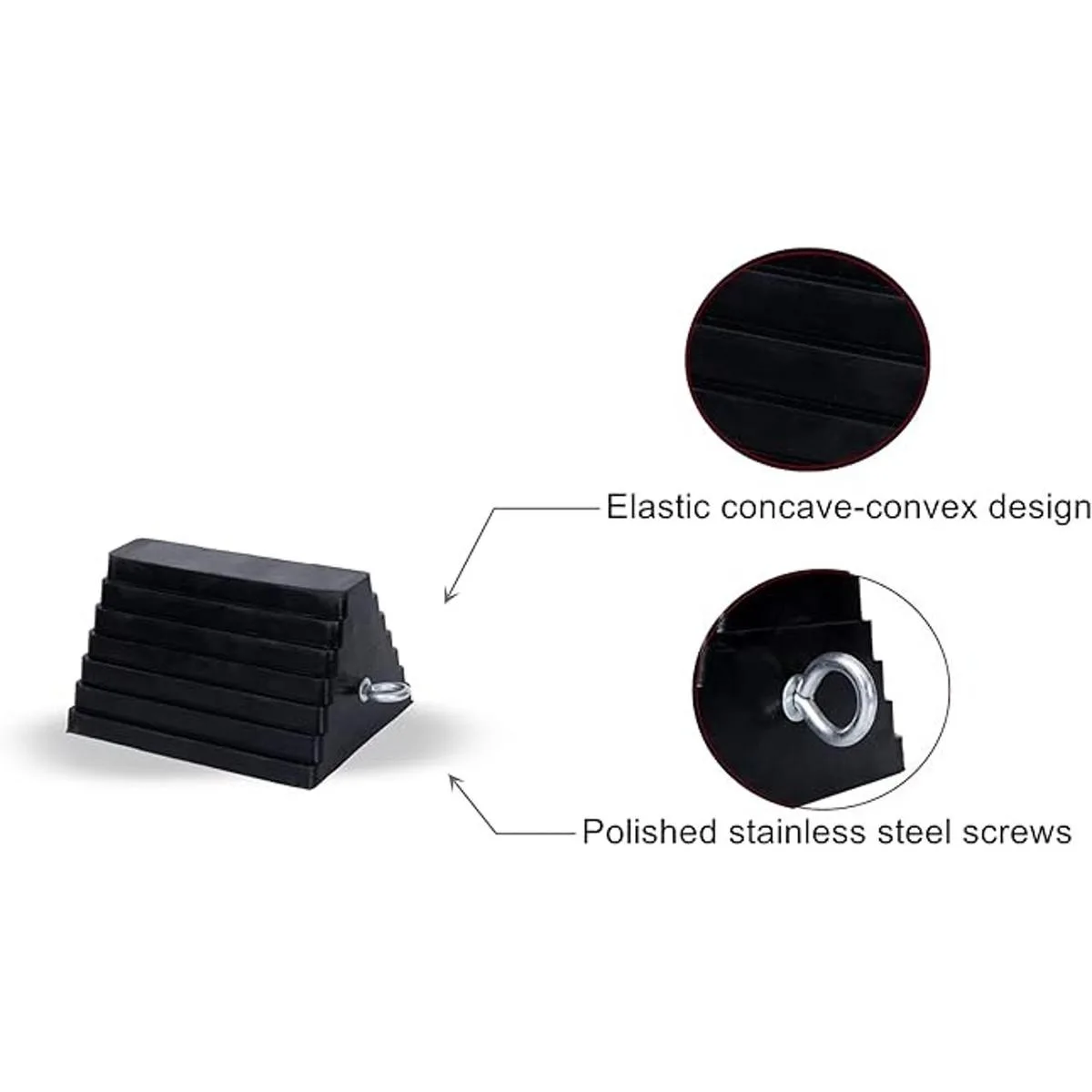 Material mejorado: Las calzas de rueda para remolques de viaje están hechas de goma natural brasileña, soportan altas temperaturas. El revestimiento de la superficie es negro resistente al aceite de alto brillo