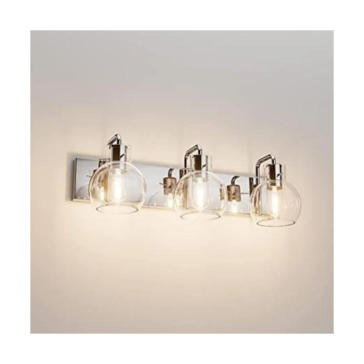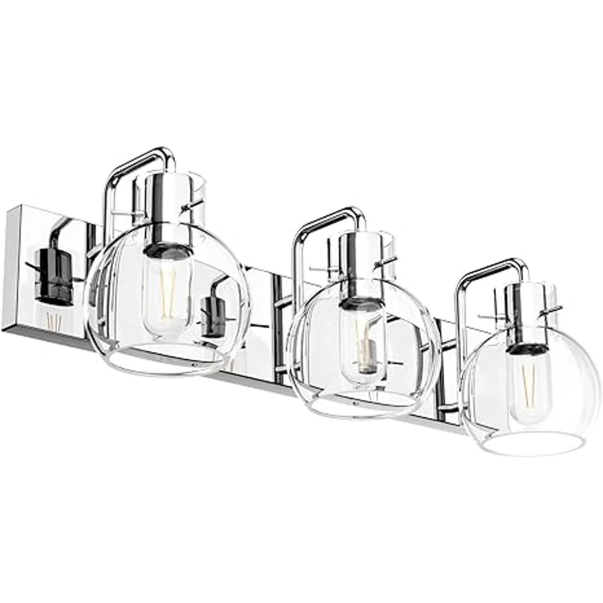 Tipace Accesorios de iluminación modernos para tocador de baño, 3 luces, acabado cromado industrial de acero inoxidable con globo, luces de tocador de vidrio transparente, iluminación de baño de granja excluye bombilla