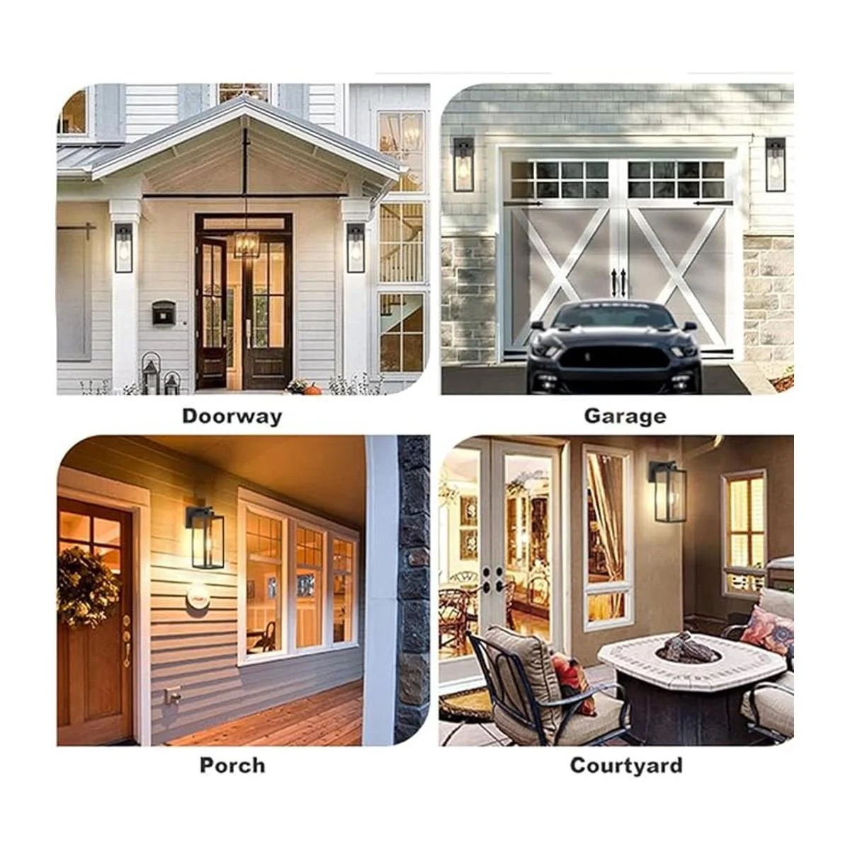 Resistente a la intemperie al aire libre: nuestros apliques de pared con construcción de metal resistente y paneles de vidrio transparente, ideales para cualquier entorno al aire libre.