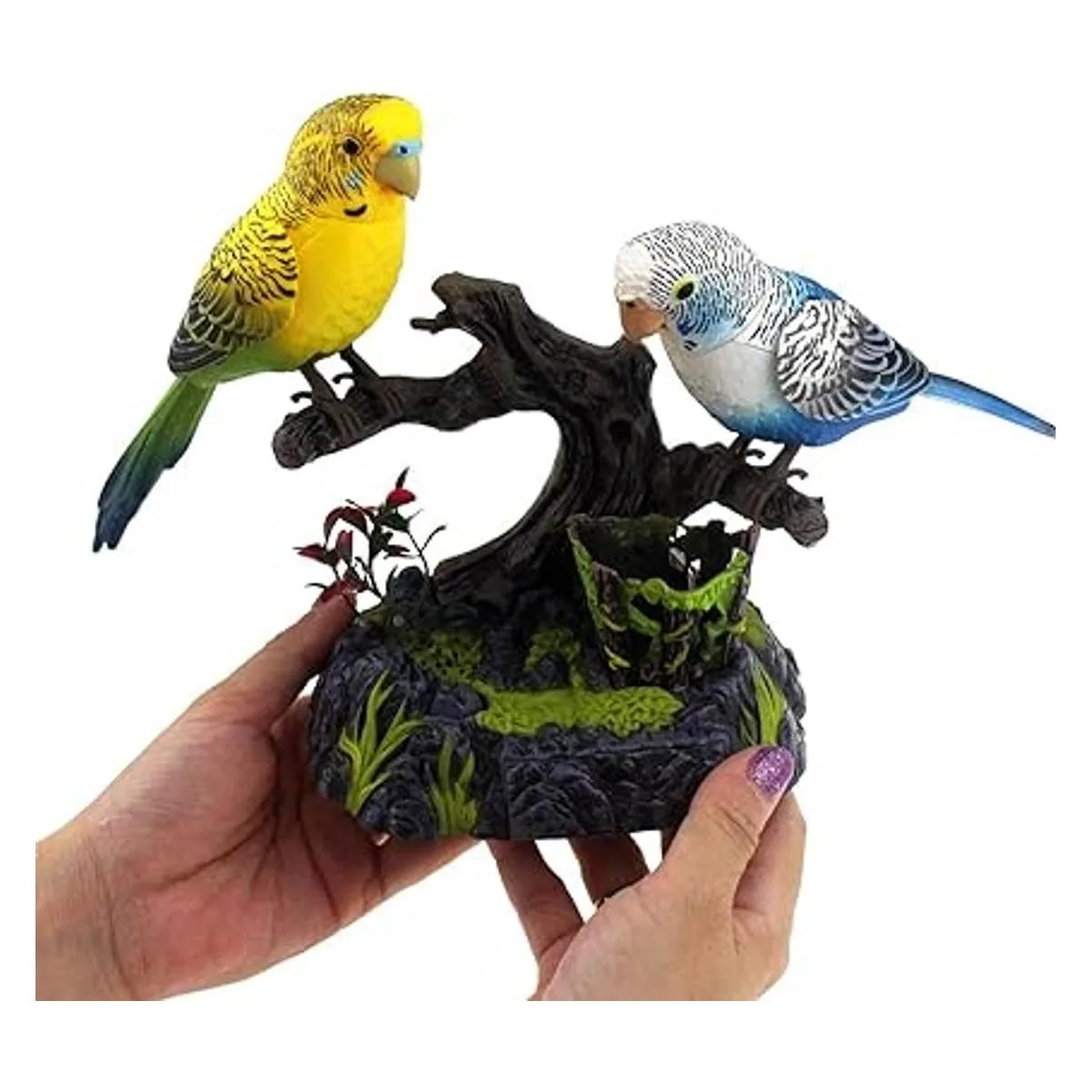 Alta simulación: loros realistas, ramas de alta simulación, mano de obra fina, al igual que los loros reales descansan en las ramas. Mientras los loros hablan, sus cabezas se balancearán de lado a lado, las alas se abrirán y los cuerpos se balancearán hacia adelante y hacia atrás.