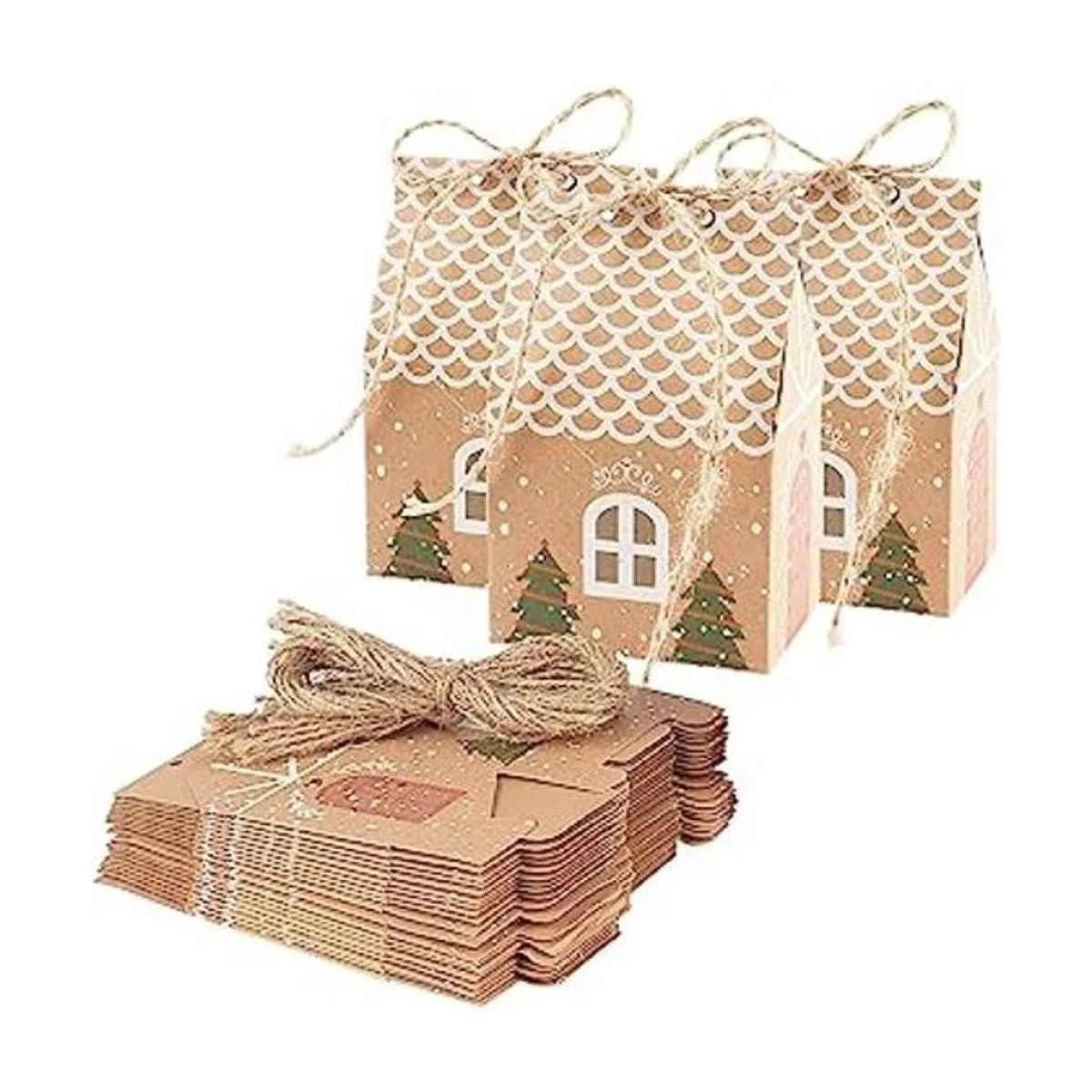 Tipshopping 20 cajas de dulces de Navidad para regalo, pequeñas bolsas de papel kraft para niños con árbol de Navidad para recuerdos de fiesta