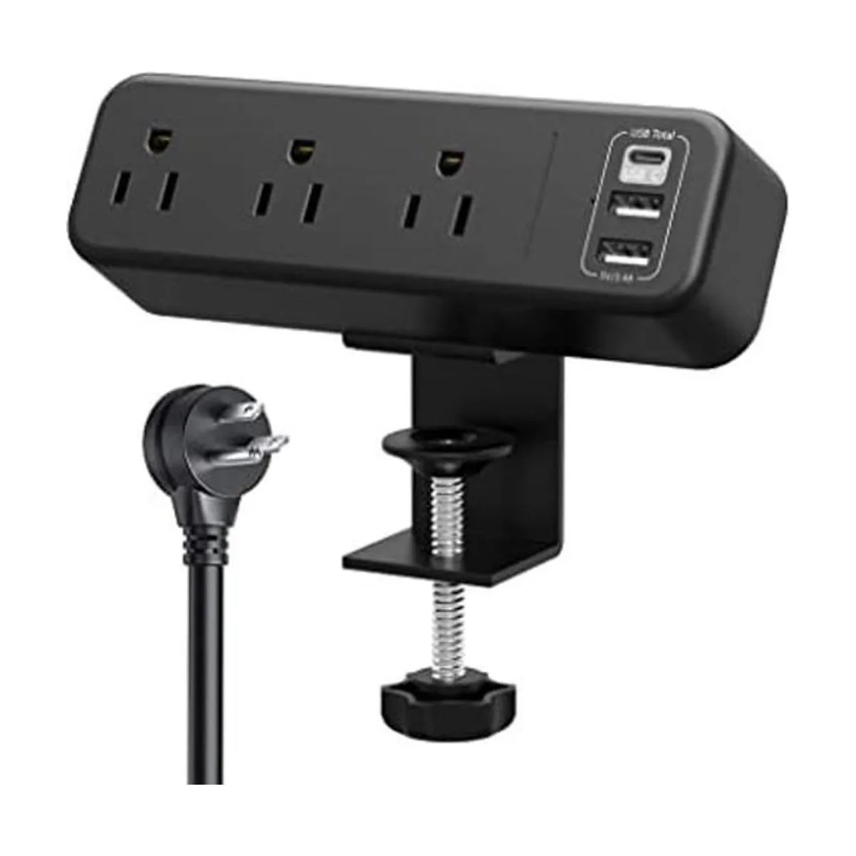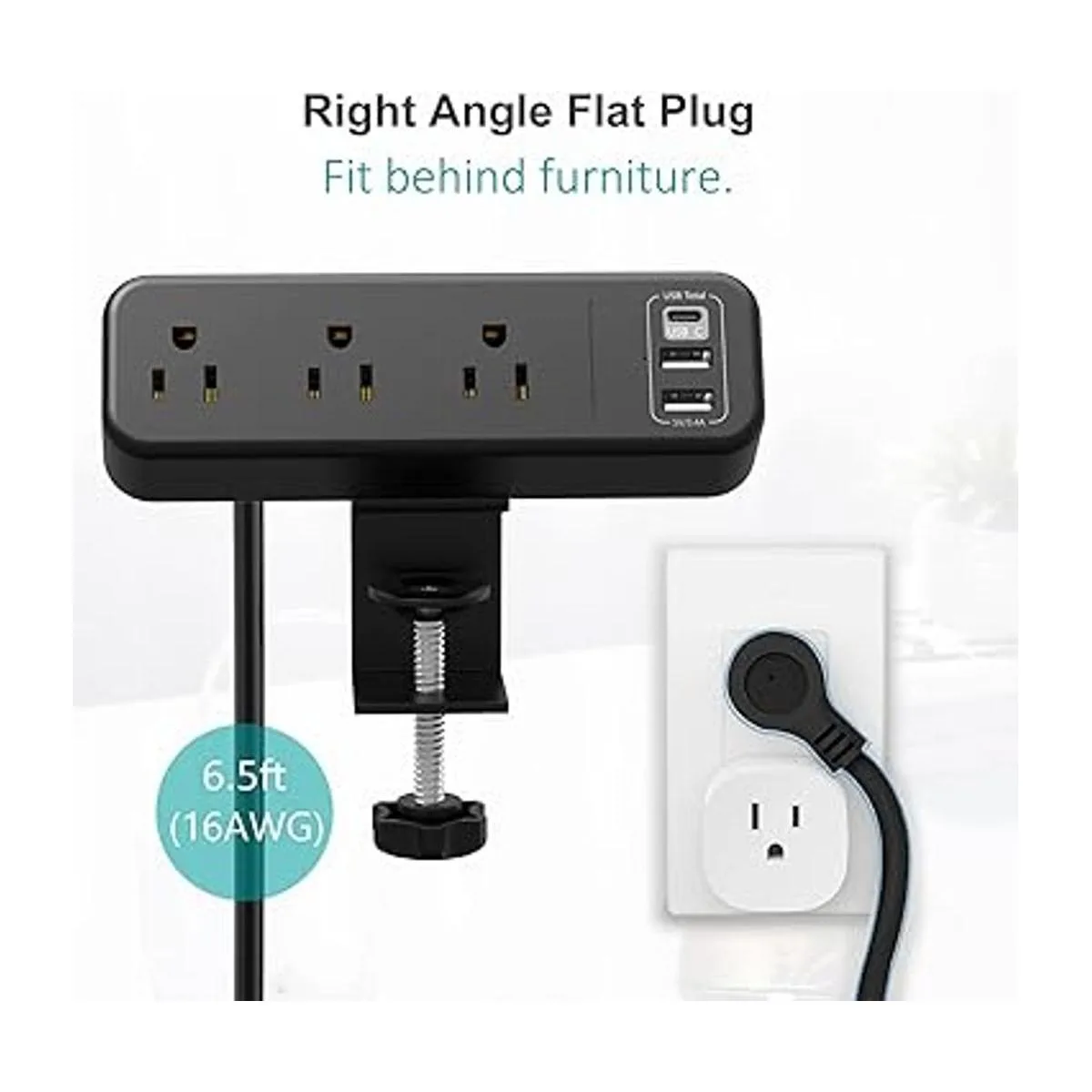 Tira de alimentación de abrazadera de escritorio con puertos USB C, cable de extensión de escritorio con 3 USB, extensor de 3 salidas de CA, salida de escritorio extraíble con cable de extensión de 6.5 pies para el hogar y la oficina
