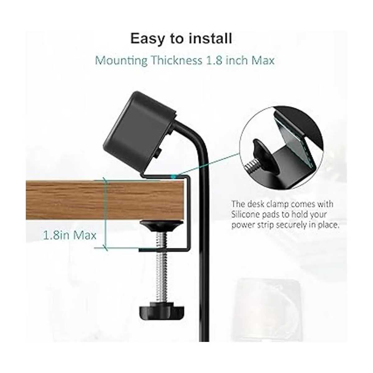 Toma de corriente con soporte de abrazadera: el grosor máximo que se puede sujetar es de 1.8 pulgadas, la distancia desde la mesa hasta la pared es de aproximadamente 1.4 pulgadas, ya sea una mesa o una encimera de cocina, te ayuda a ahorrar espacio y mantenerlo ordenado.