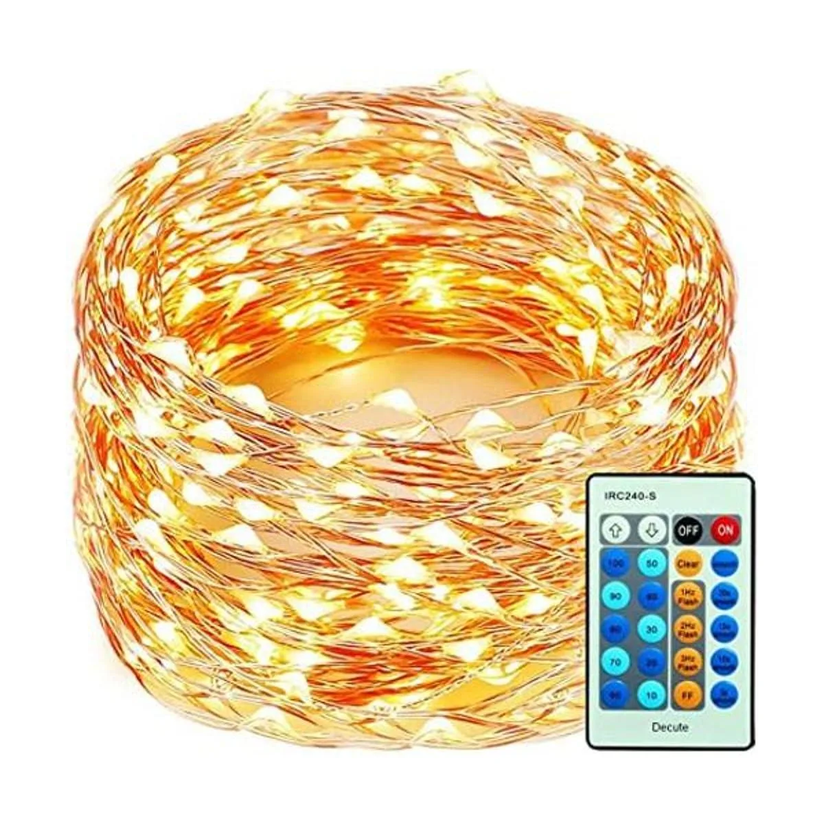 Tira de luces de 300 LED de alambre de cobre de 99 pies, regulables con control remoto, luces estrelladas con certificación UL, decoración para fiestas, bodas, dormitorios, árbol de Navidad, color blanco cálido