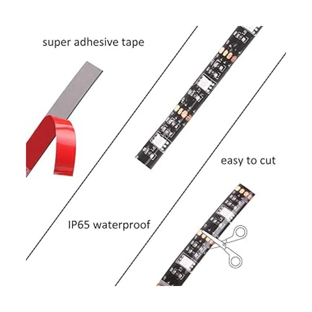 Fácil de instalar y usar: las tiras de luces LED funcionan con pilas tienen un diseño especial con caja de pilas, alimentado por 3 pilas AA no incluidas con fácil instalación. Vienen con cinta adhesiva súper adecuada para la mayoría de superficies, por favor, limpia la superficie antes de pegarlas.
