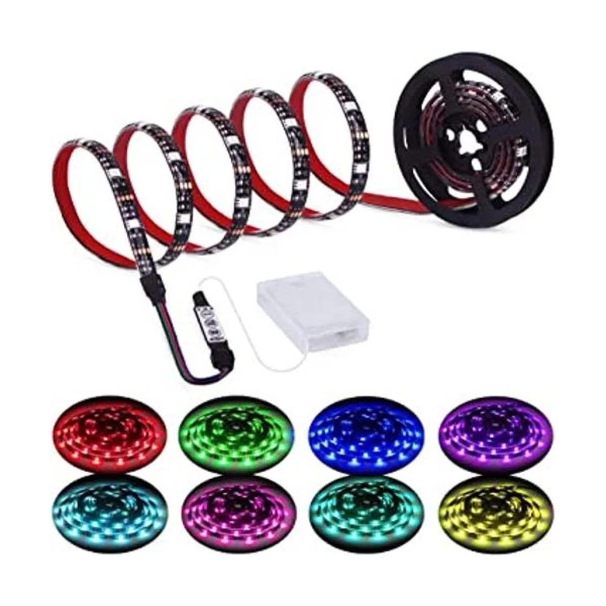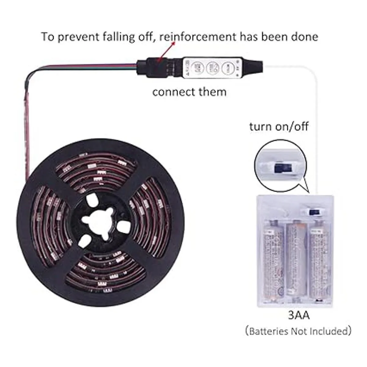 Tira de luces LED con pilas, RGB luces LED tira de luces con batería, 3 llaves, controlador