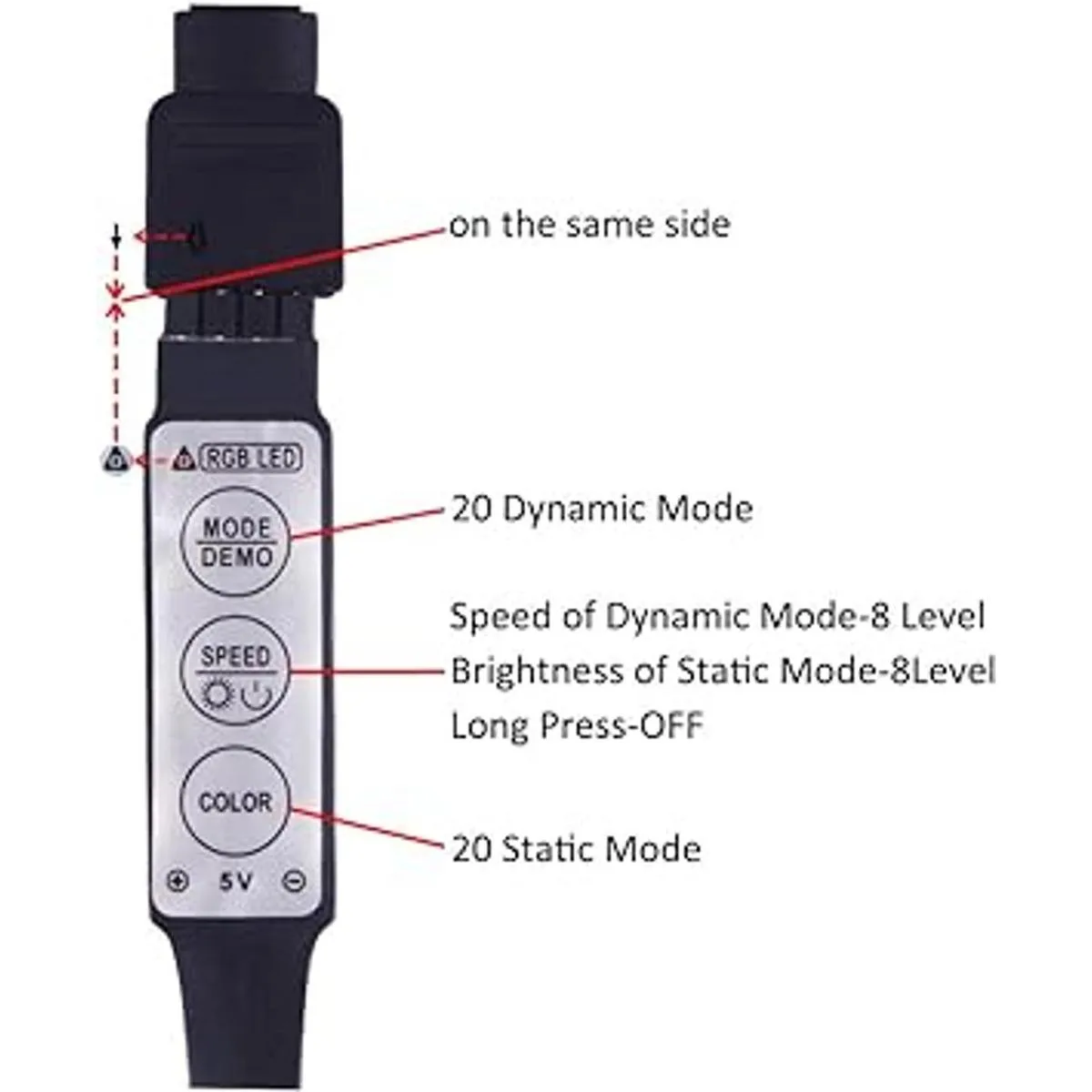 Control de 3 mini teclas: control con 3 botones, modo/velocidad brillo, encendido/apagado, color, para regulación de flash, para control de velocidad, para cambio de color, fácil e inteligente de usar, puedes ajustarlos de acuerdo a tu preferencia.