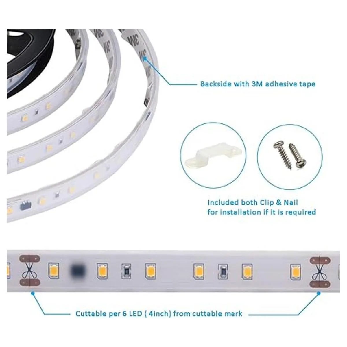 Tira de luz LED de 120 V regulable por interruptor de atenuación de pared, impermeable IP65, no necesita controlador LED, luz de cuerda LED blanca cálida de 2800 K, 300 luces LED de 16.4 pies para interiores o exteriores