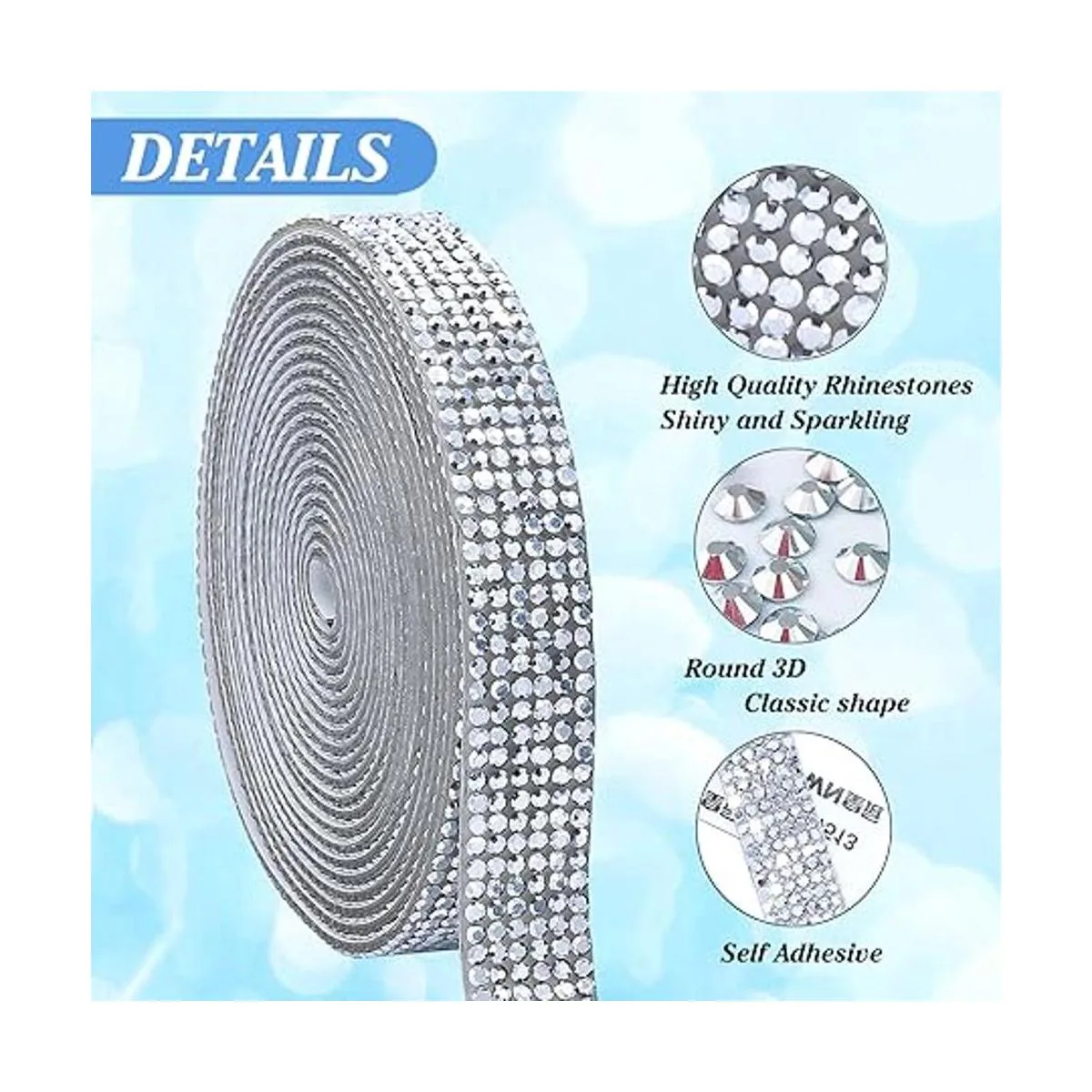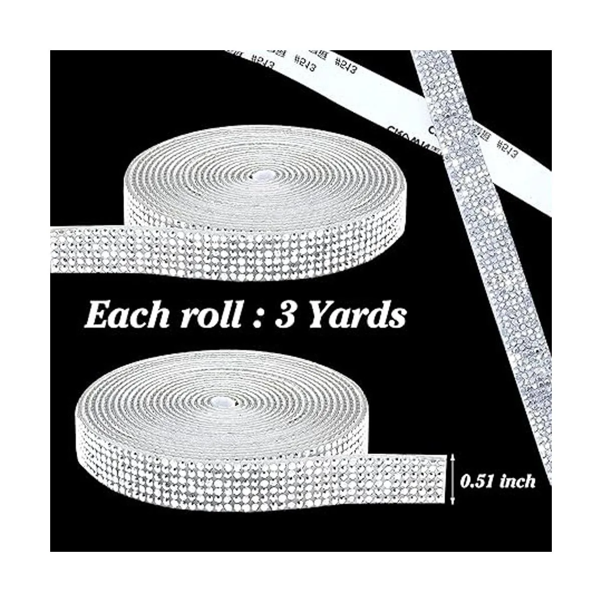 Contenido del paquete: recibirás un rollo de calcomanías adhesivas de diamantes de imitación de cristal brillantes de aproximadamente 0.5 pulgadas de ancho 6 filas de diamantes de imitación, cada rollo mide 3 yardas, cada diamante de imitación mide aproximadamente 0.079 in de diámetro.