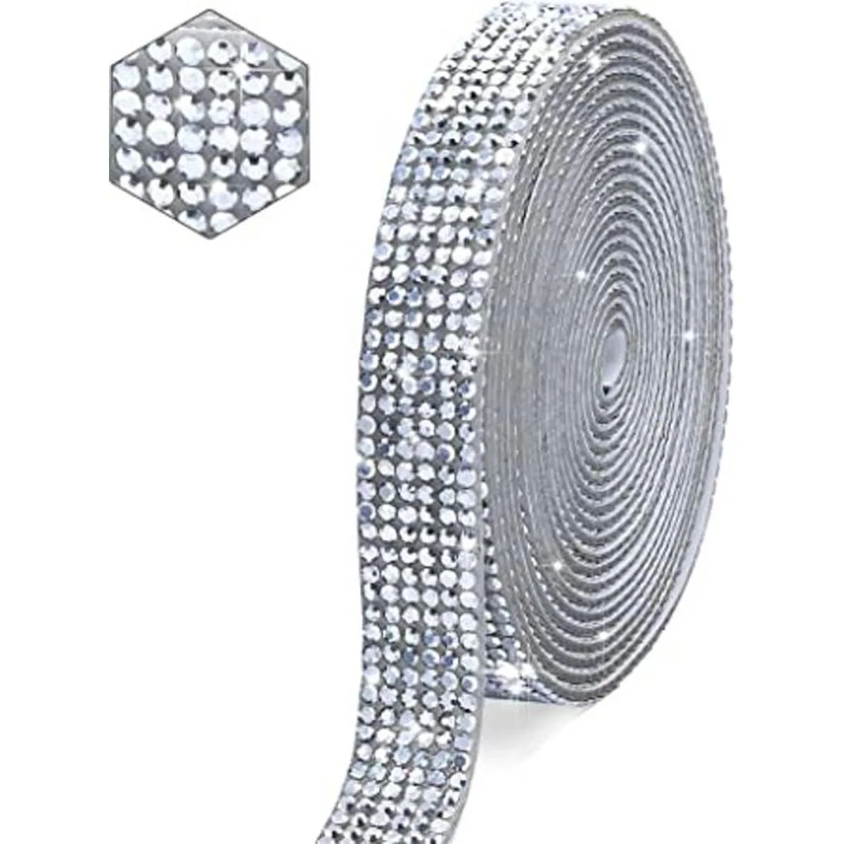 Tiras autoadhesivas de diamantes de imitación de cristal, cinta de diamantes, rollo de piedras preciosas brillantes para manualidades con diamantes de imitación de 0.079 in para manualidades, bodas, fiestas de bodas, decoración de teléfono de automóvil plata mía