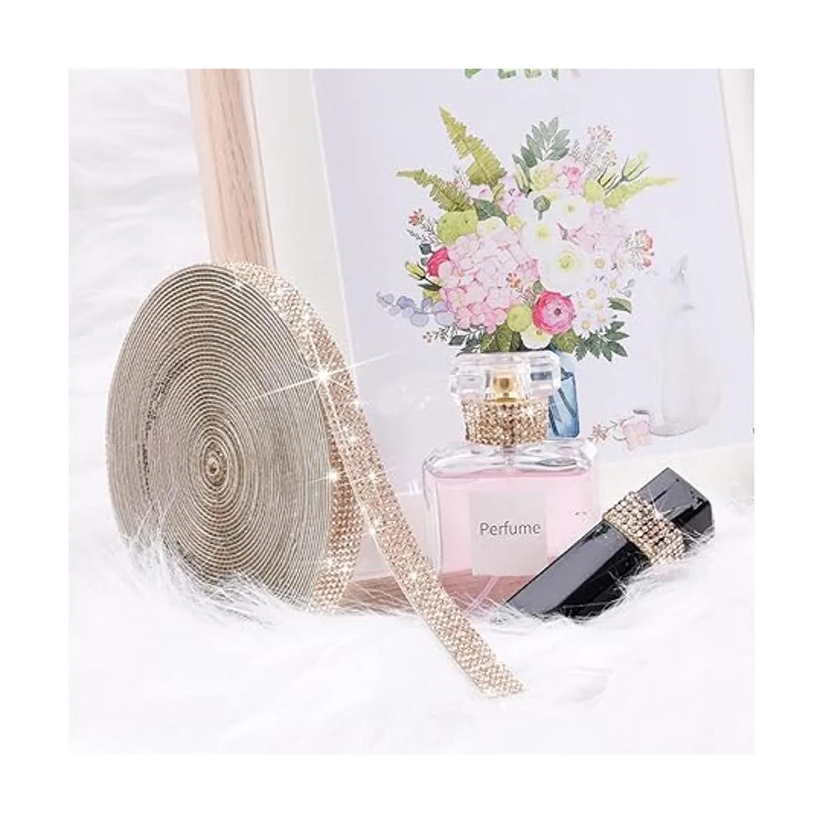Brillante y brillante: la cinta autoadhesiva de diamantes de imitación de cristal es brillante bajo la luz, impresionante y hermosa. Con decenas de miles de diamantes de imitación delicadamente elaborados, esta cinta adhesiva de diamantes es perfecta para decorar tus obras de arte, lo que puede hacer que cobren vida, se ve glamurosa, exquisita y más tridimensional.