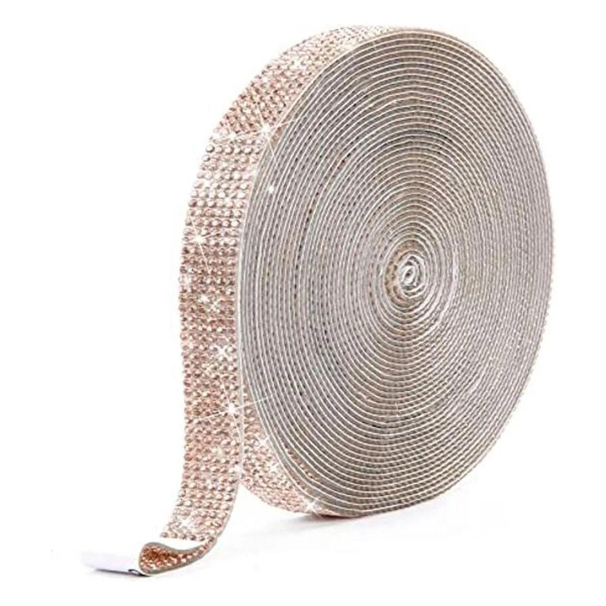: el paquete incluye 1 rollo de cinta adhesiva de diamantes de imitación, 0.5 pulgadas de ancho y 9 yardas de largo, el área total es de 165 pulgadas cuadradas, 6 filas de diamantes de imitación de 0.079 in, más práctico. Puede haber un ligero olor después de recibir la mercancía, por favor, no te preocupes, es normal, simplemente déjala durante un tiempo.