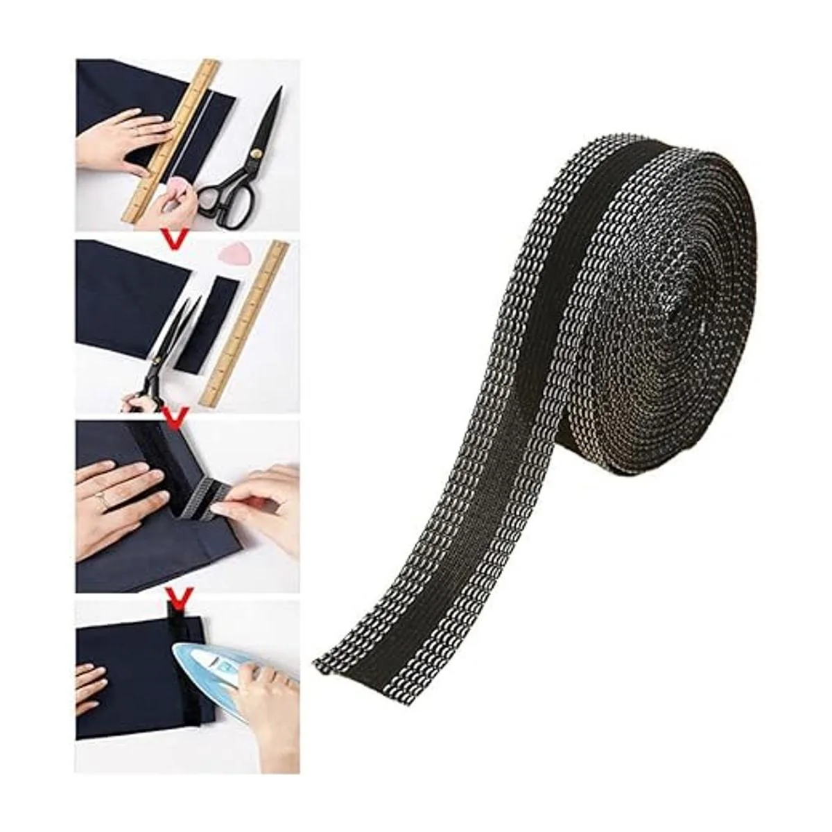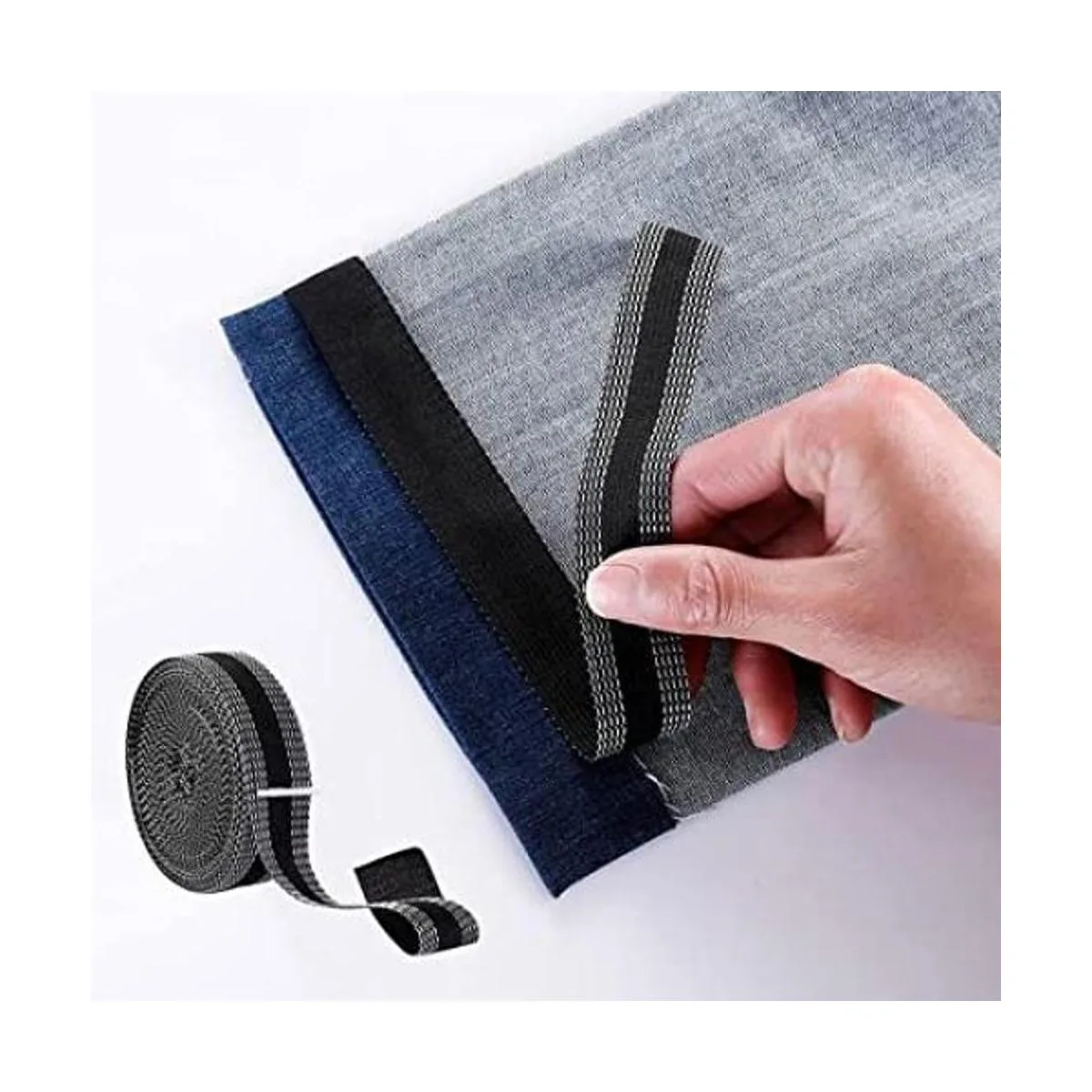 3. Material fiable: la cinta de coser para dobladillo está hecha de fibra de poliéster, tiene características de alta elasticidad, fácil de lavar y secar más rápidamente, dando a las personas una sensación de comodidad; puedes mantenerlo durante mucho tiempo debido a que la tela no cambiará después del lavado