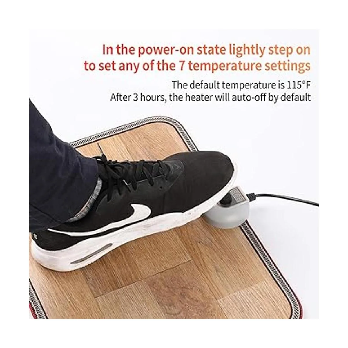 Interruptor de pie con pantalla de temperatura: mantén presionado durante más de 2 segundos para encender o apagar. En el estado de encendido, pisa ligeramente para ajustar cualquiera de los 7 ajustes de temperatura. La temperatura predeterminada en el arranque es de 115 F. El producto se apagará automáticamente después de 3 horas. El cable de alimentación es de 6.2 ft de largo.