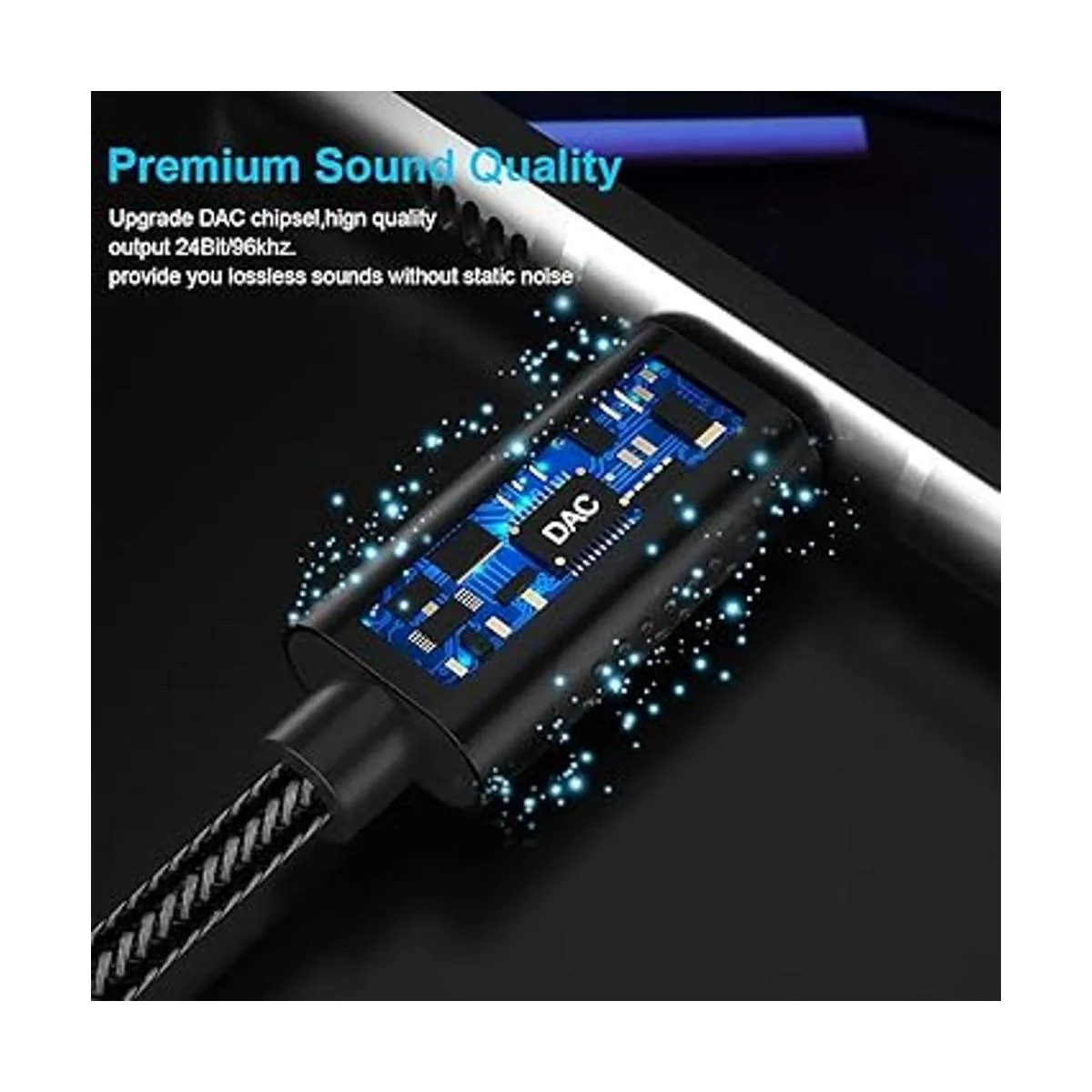DAC con cancelación de ruido: chip Dac mejorado integrado, salida de hasta 24 bits/96 kHz para mantener la acústica de alta resolución de tus auriculares, para garantizar una transmisión estable y sin pérdida de señal de audio, te proporciona música de calidad de sonido de alta fidelidad