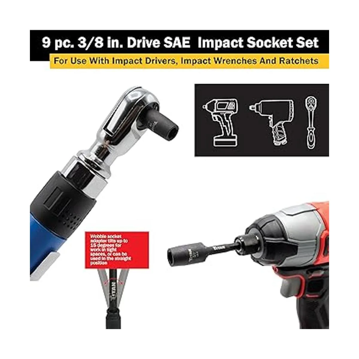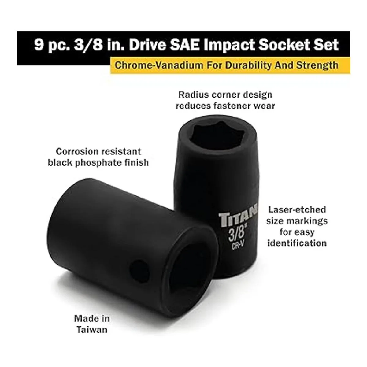 Titan 48001 Juego de llaves de impacto SAE de 9 piezas de 38 pulgadas