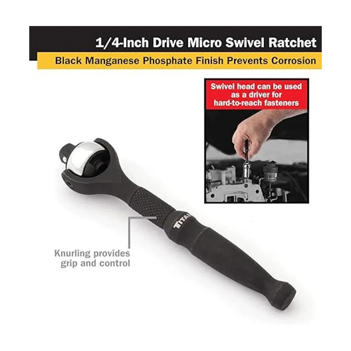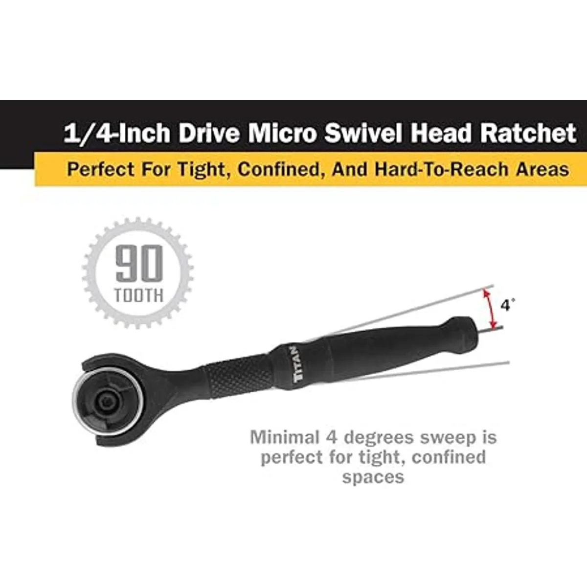 Titan Trinquete, 11313, 14 pulgadas x 4 pulgadas, cabeza giratoria micro de 90 dientes, color negro