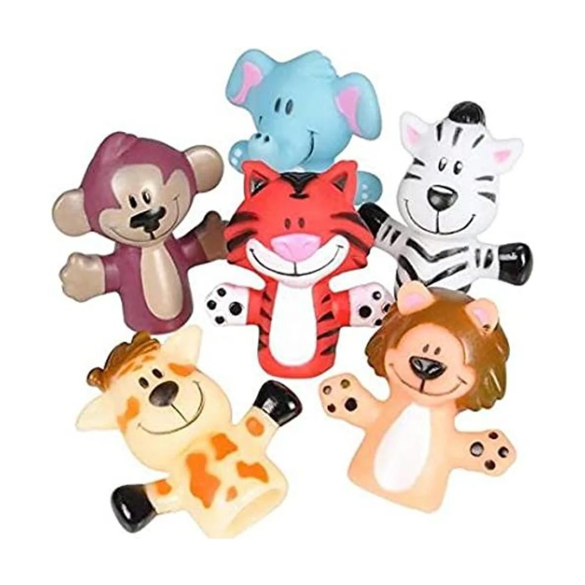 12 Zoo Safari animal vinilo marionetas de dedo Nuevo en paquete sellado.
