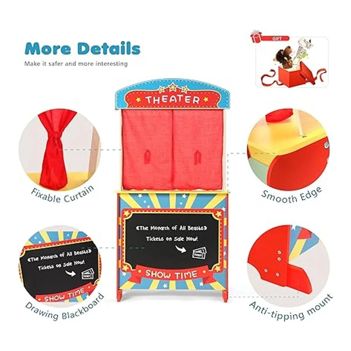 Soporte de limonada para niños: en la parte posterior del teatro hay un soporte de limonada. Se convertirá en una pequeña tienda que vende limonada, aperitivos o frutas cuando se vuelque. Y hay varias pizarras pequeñas en cada estante para indicar el artículo o el precio. Nota: los accesorios en fotos como frutas y limonada no están incluidos