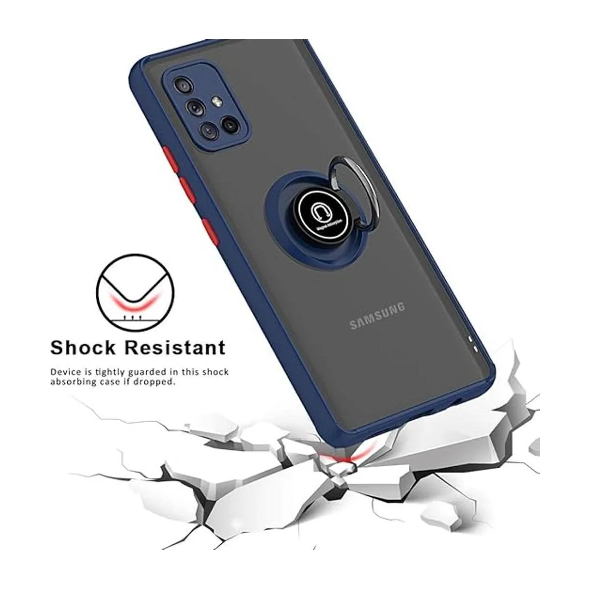 TJS Funda compatible con Samsung Galaxy A71 5G, con protector de pantalla de vidrio templado, anillo de metal defender, soporte magnético, soporte resistente contra caídas azul