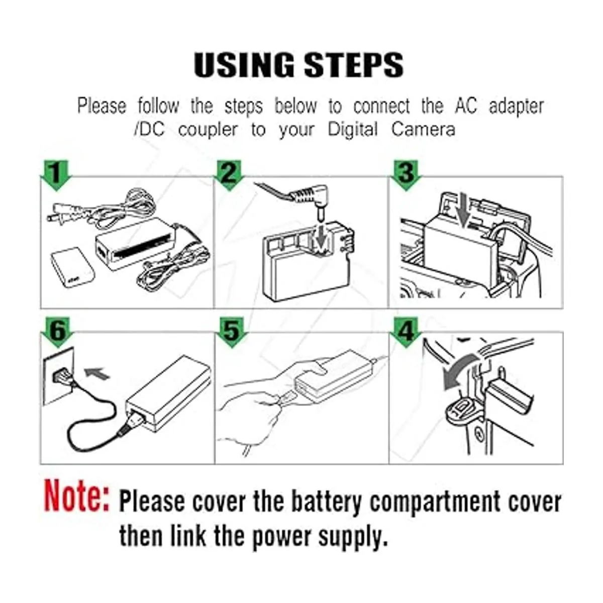Pasos de uso: retira la batería original, reemplaza con batería virtual y cubre la tapa del compartimento de la batería, conecta el adaptador, conecta la toma de corriente. El acoplador dre15 dc es una nueva versión que puede desconectar el cable desde ambos lados.