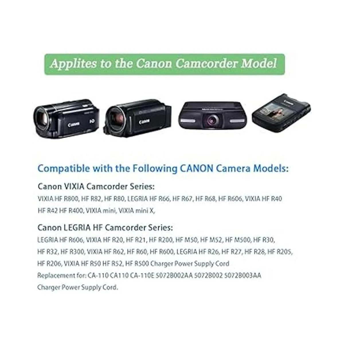 TKDY Kit de cargador de cámara CA110 CA110 para Canon VIXIA HF M50 R800 R80 R700 R500 M52 M500 HFR70 HFR72 HFR700 R50 R52 R60 R200 R30 LEGRIA HF Cable adaptador de corriente alterna para videocámara R206 R26.