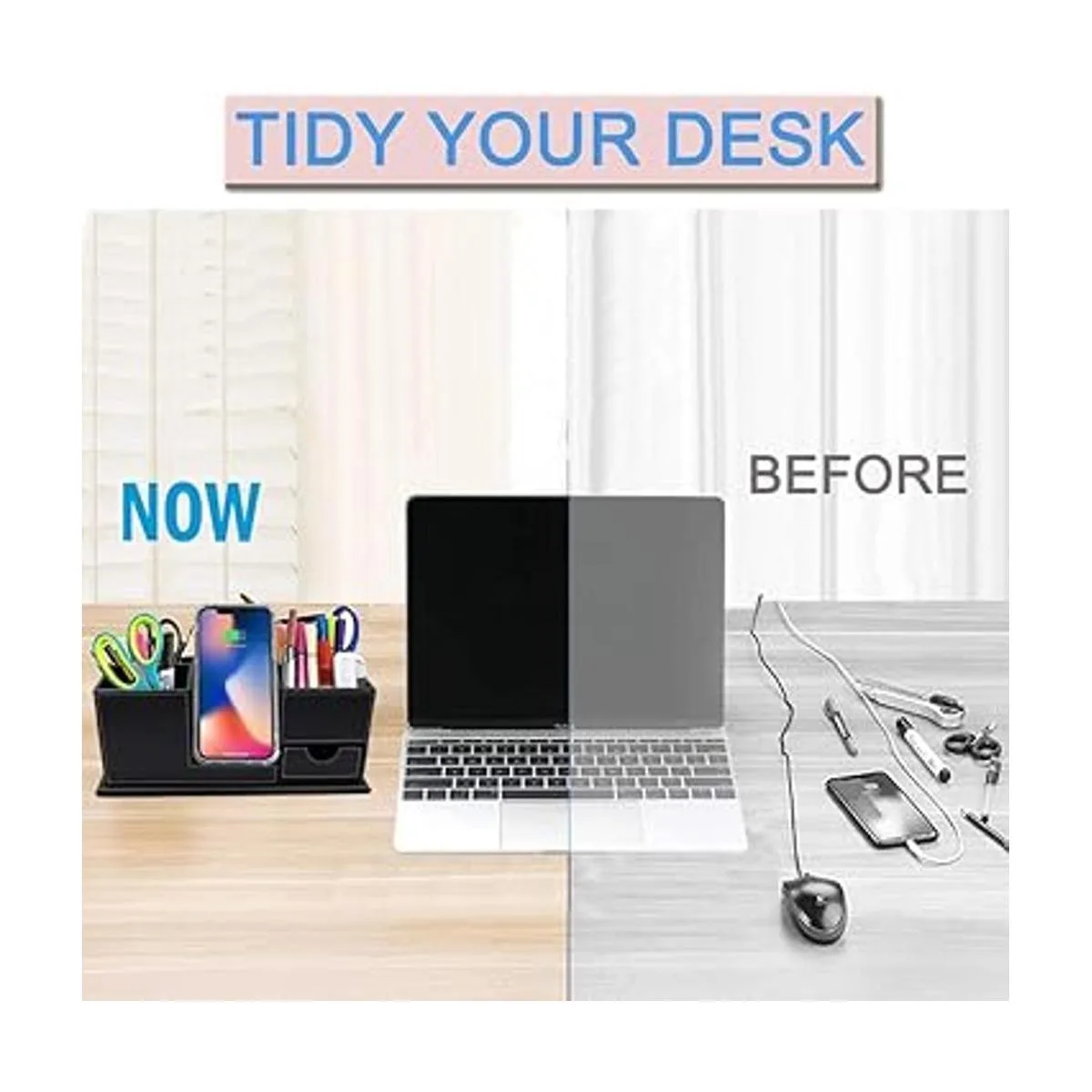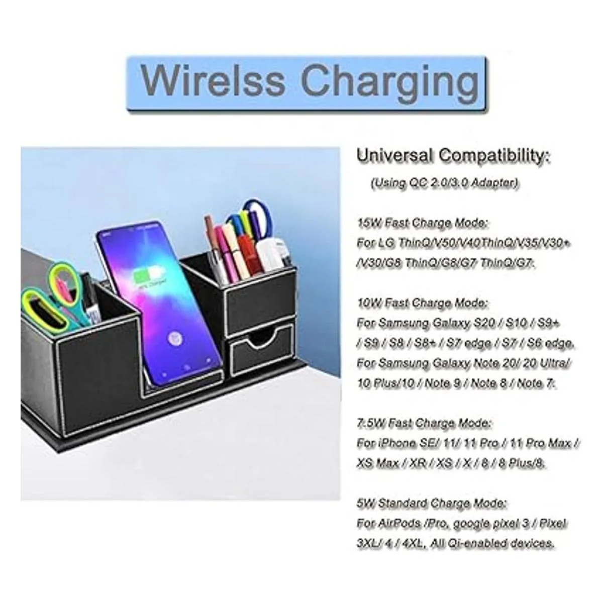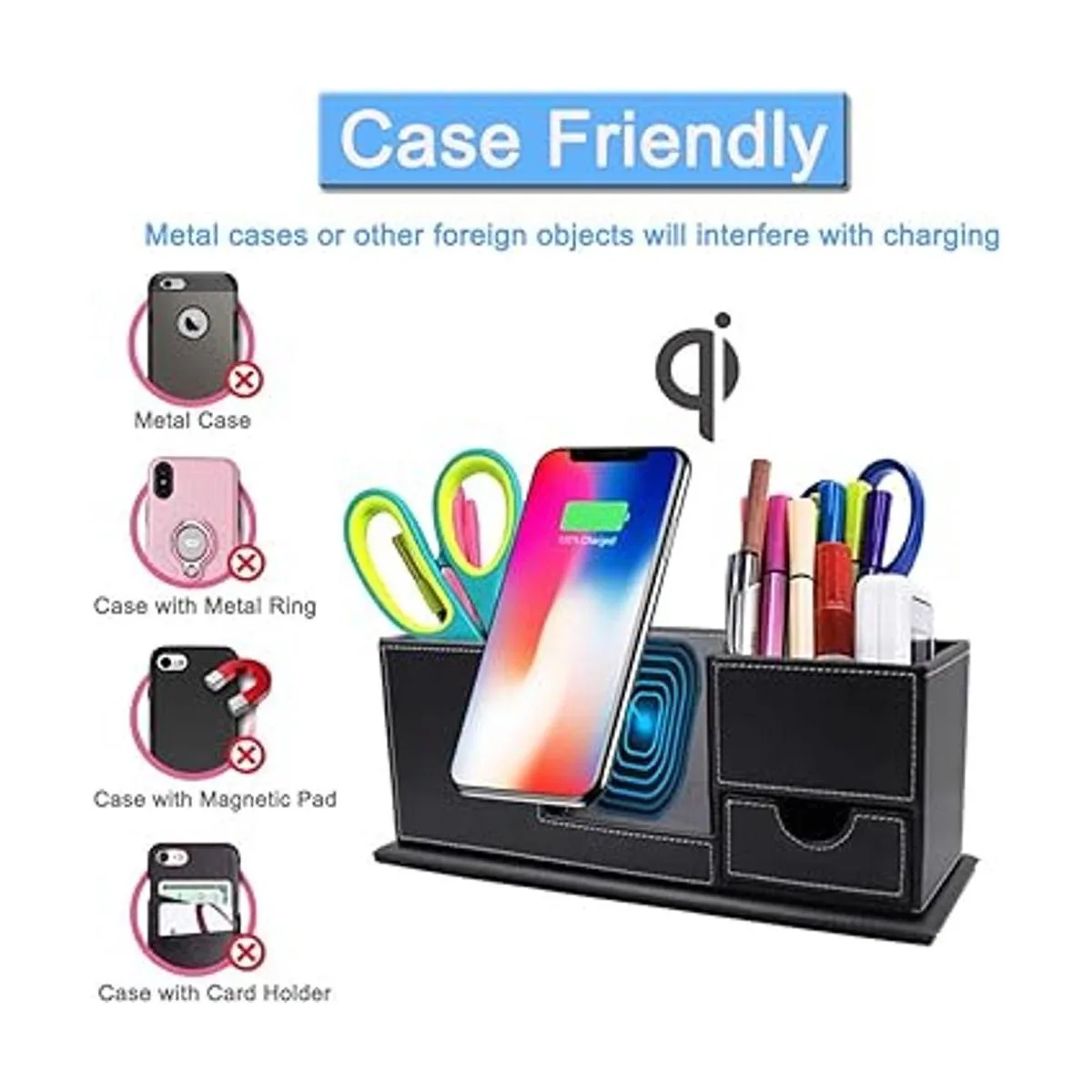 TKDY Organizador de cargador de teléfono inalámbrico de escritorio, soporte para lápices de escritorio con base de estación de carga Qi.
