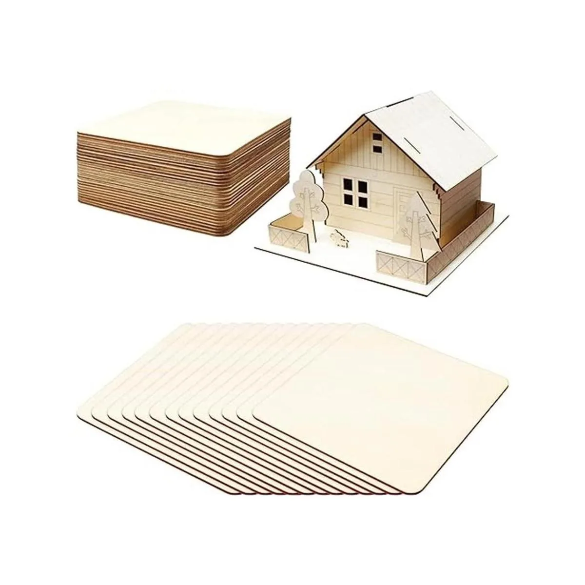 Tamaño: cada cuadrado de madera sin terminar mide 5.9 x 5.9 in y 0.102 in de grosor, en blanco y sin terminar en ambos lados, ligero pero muy duradero para varios proyectos de manualidades.