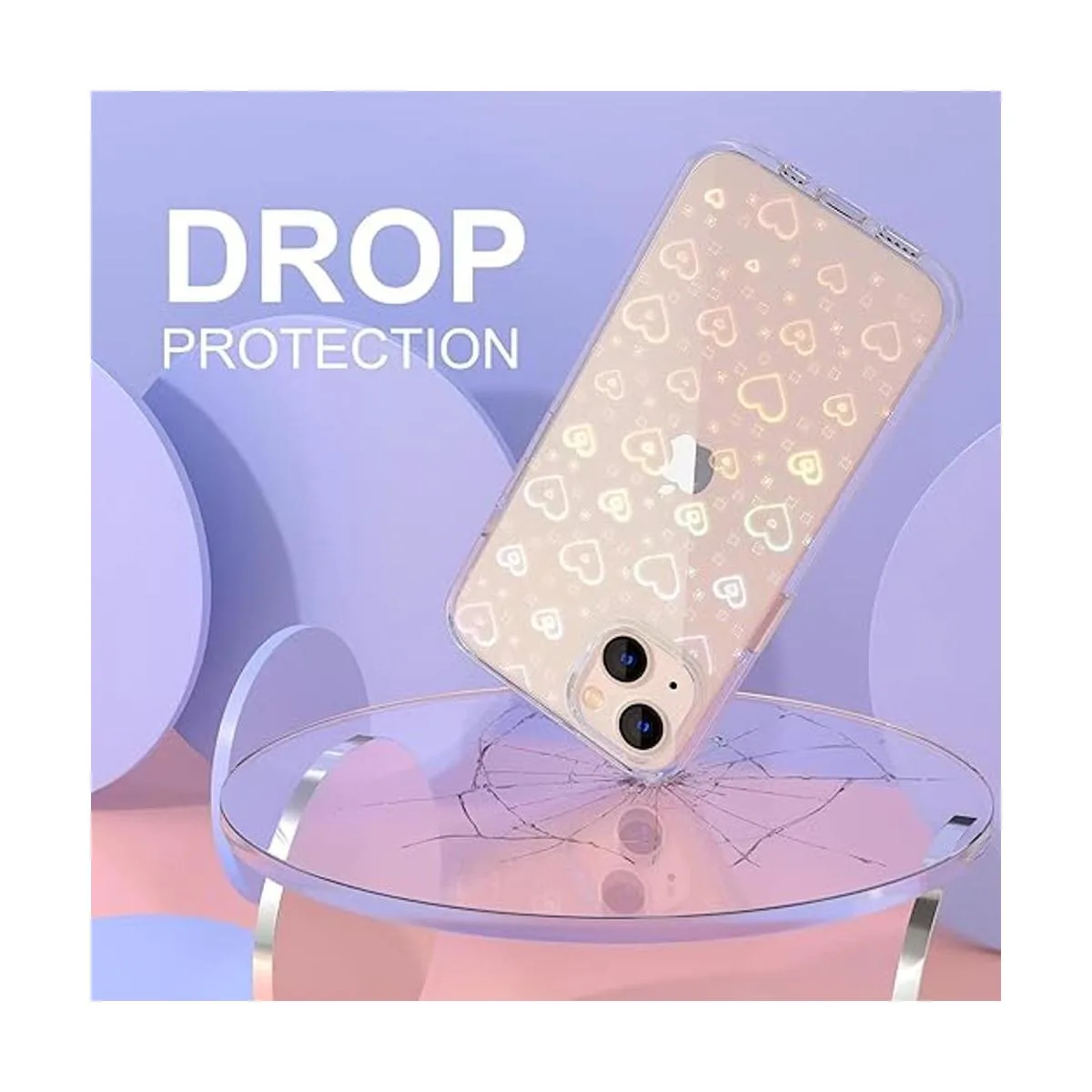 Tksafy Funda compatible con iPhone 13, diseño holográfico de corazón de amor con purpurina transparente para mujeres y niñas, policarbonato duro antiamarillo a prueba de golpes, funda protectora para iPhone 13, corazón arcoíris