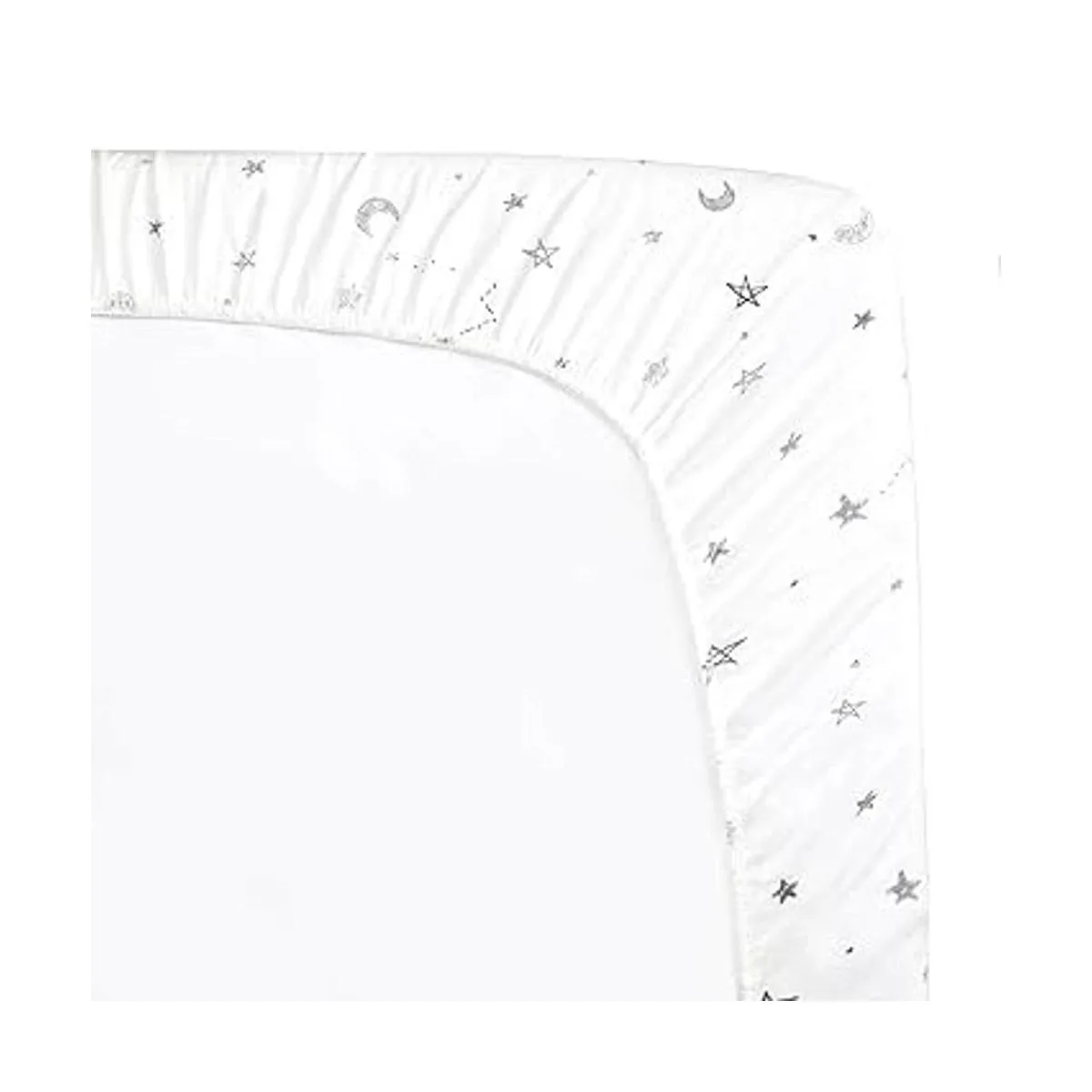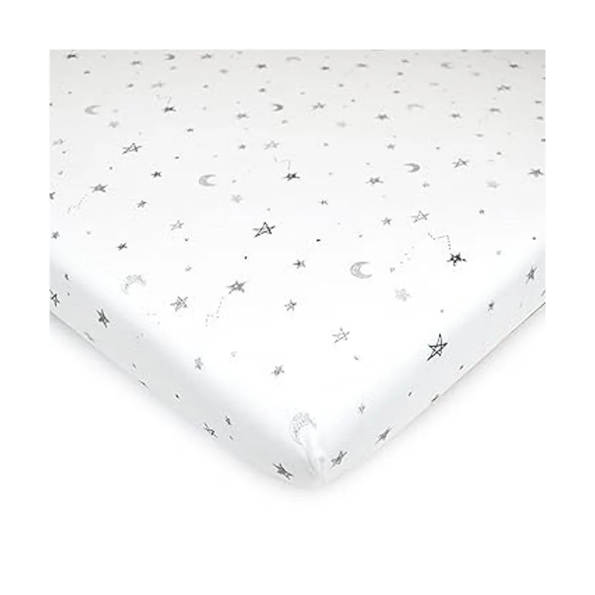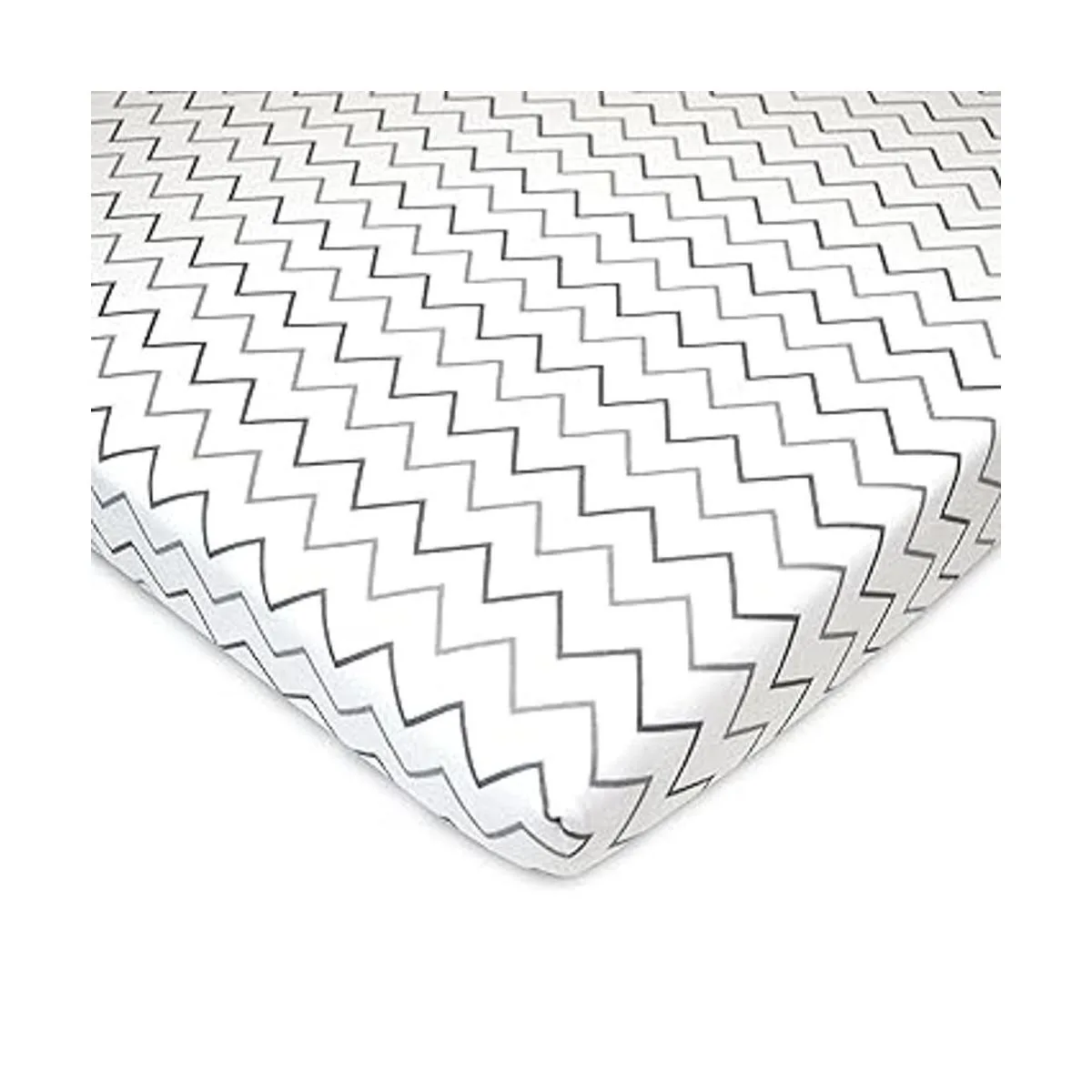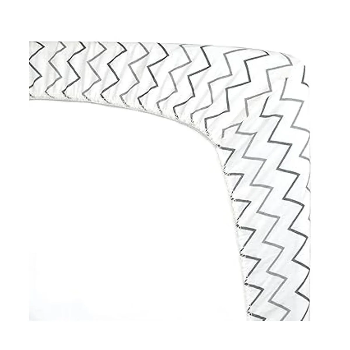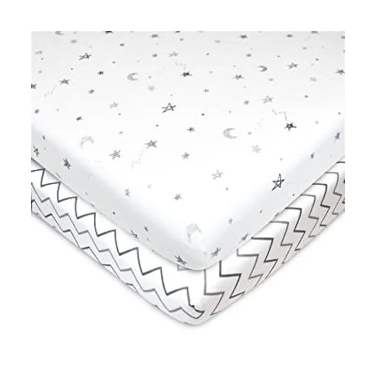 TL Care Paquete de 2 sábanas de punto de jersey de algodón 100 natural estampadas, N Play Playard, estrellas griseszigzag gris, suave transpirable, para niños y niñas