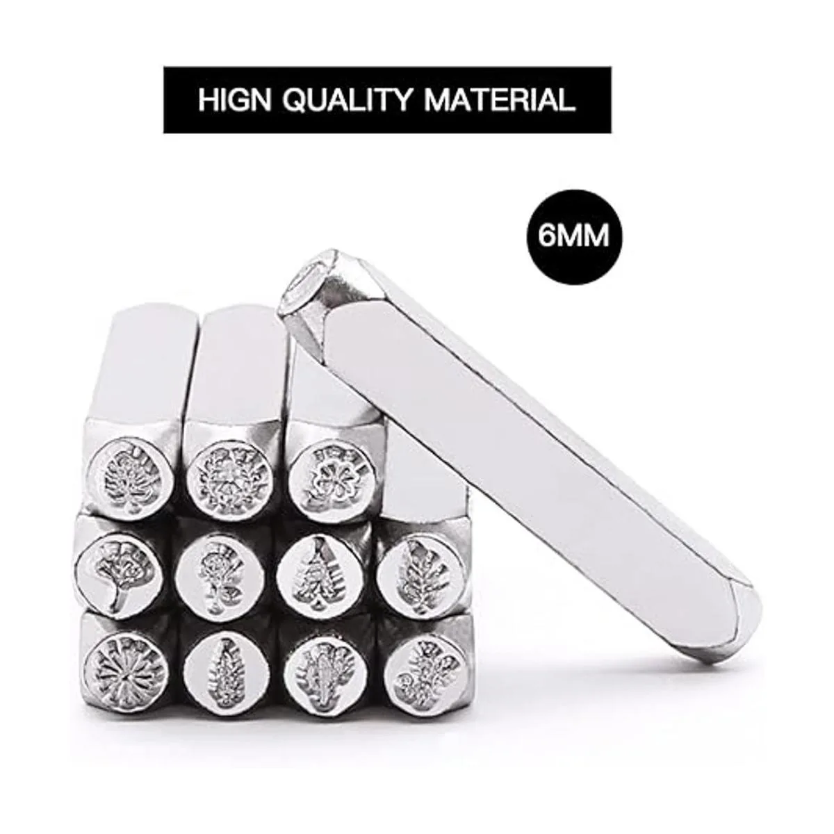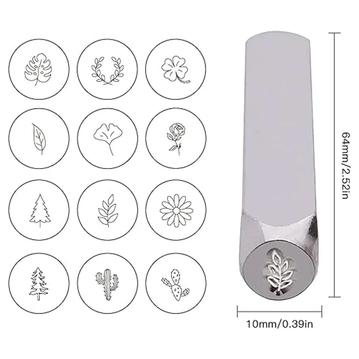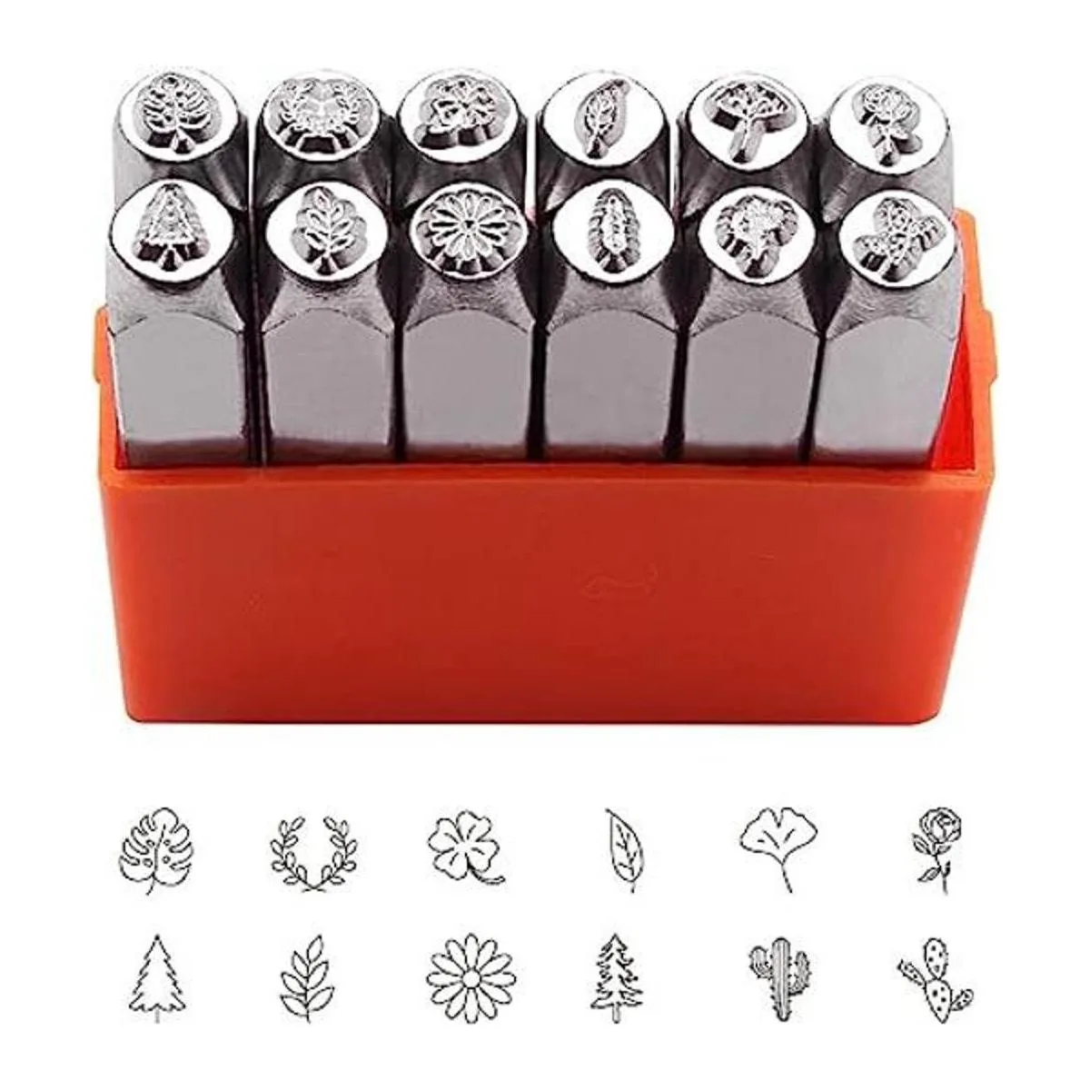 Tlimus Juego de 12 sellos de metal con diseño de plantas, 0.236 in (1/4 pulgadas), kit de sellos de metal con temática de plantas, suministros de manualidades, accesorios de estampado, cuero, madera