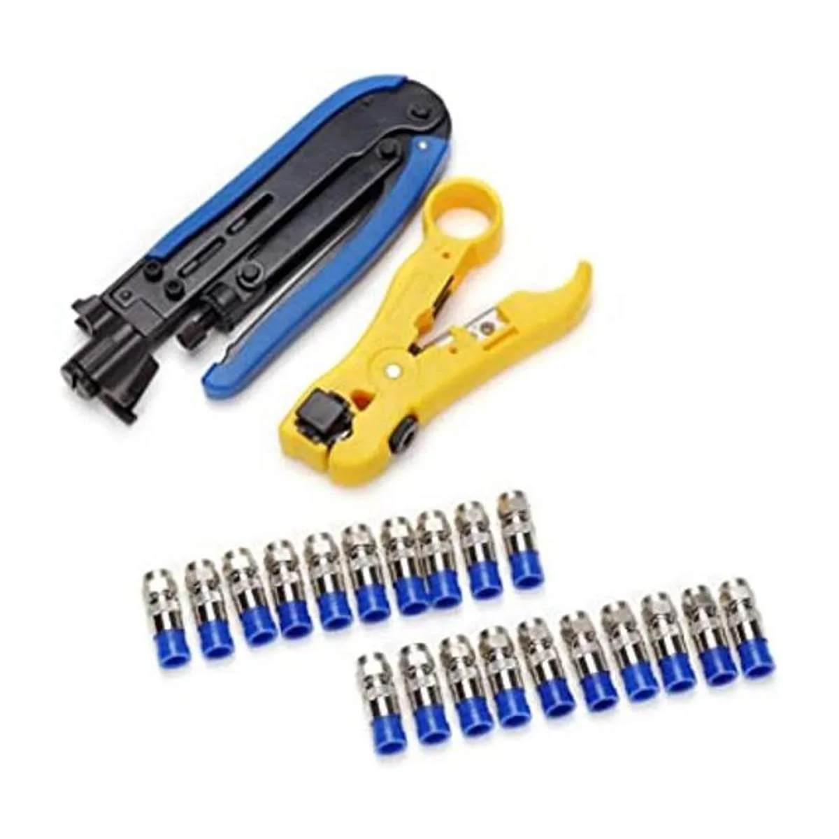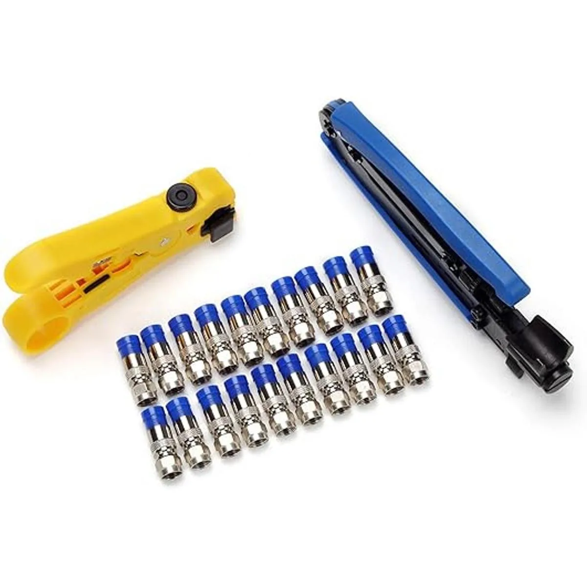 TLS.eagle Juego de herramientas de compresión coaxial para cable coaxial con F RG6 RG59 RG11 RG7 20 unidades, color azul