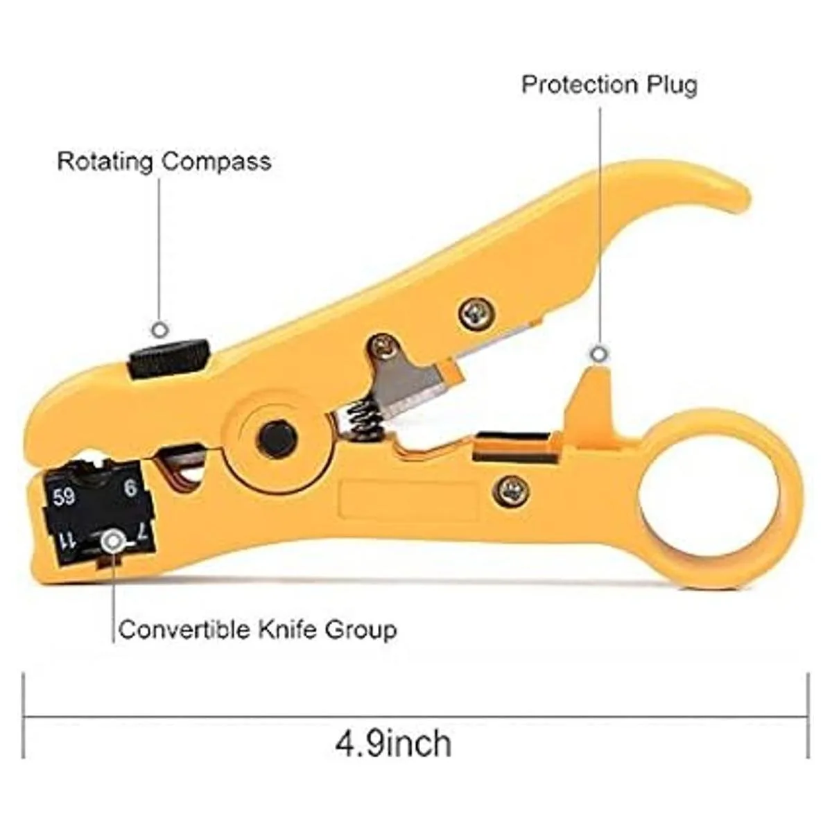 CARACTER Cabezal giratorio avanzado: alterna rápida y fácilmente para compresión de conectores RG6, RG11, RG7, RG58, RG59 en una sola herramienta